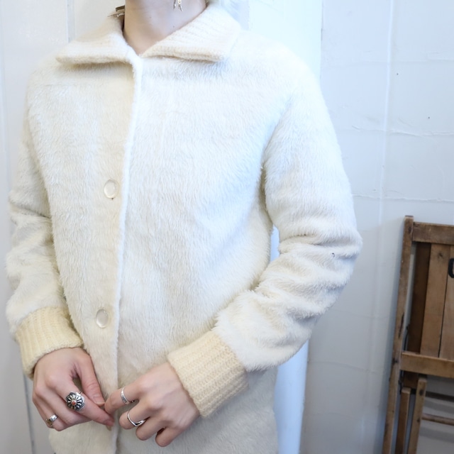 -70s offwhite plain collared fleece cardigan [l-4689]