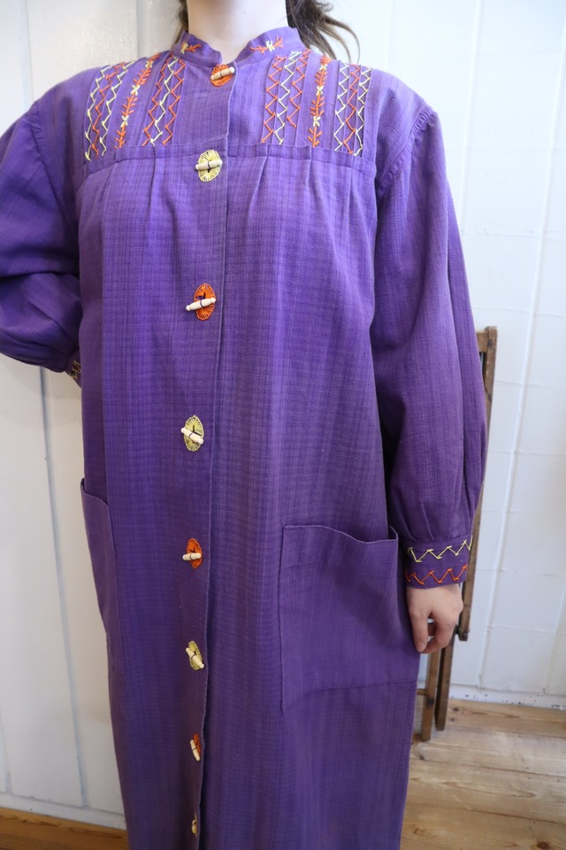 purple×orange embroidery front button gown dress [l-4607]