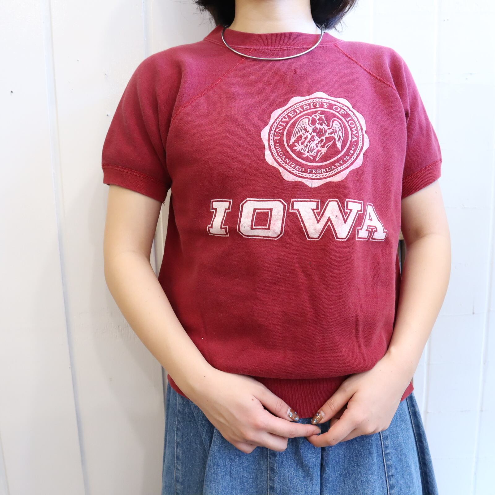 red×white IOWA print short sleeve vintage sweat [k-2616]