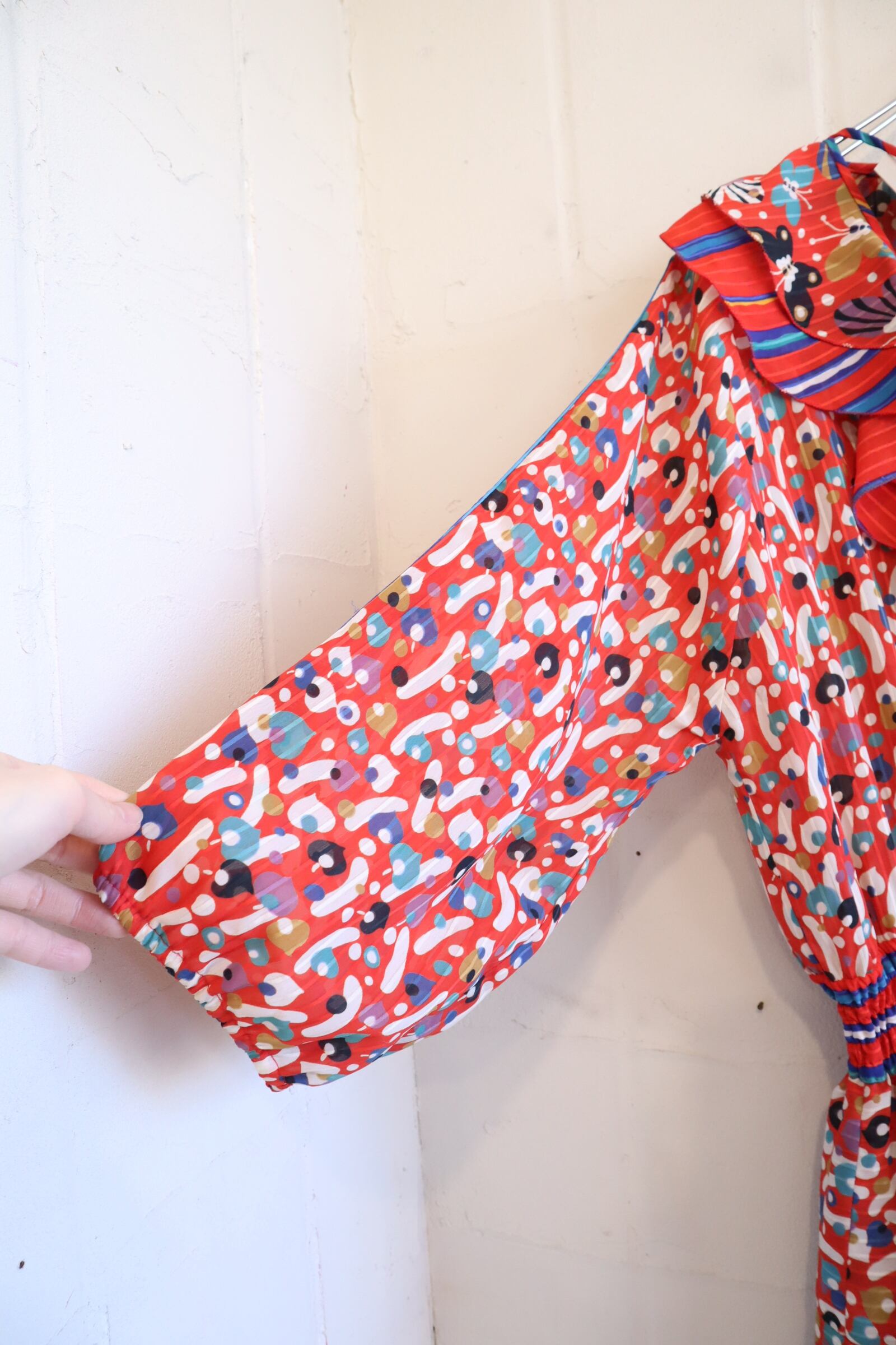 80s Diane Freis red×lightblue tiered silhouette dress [l-2624]