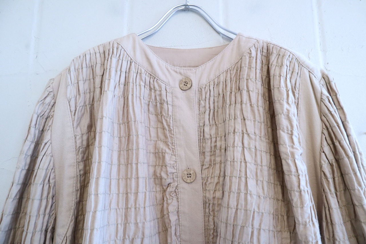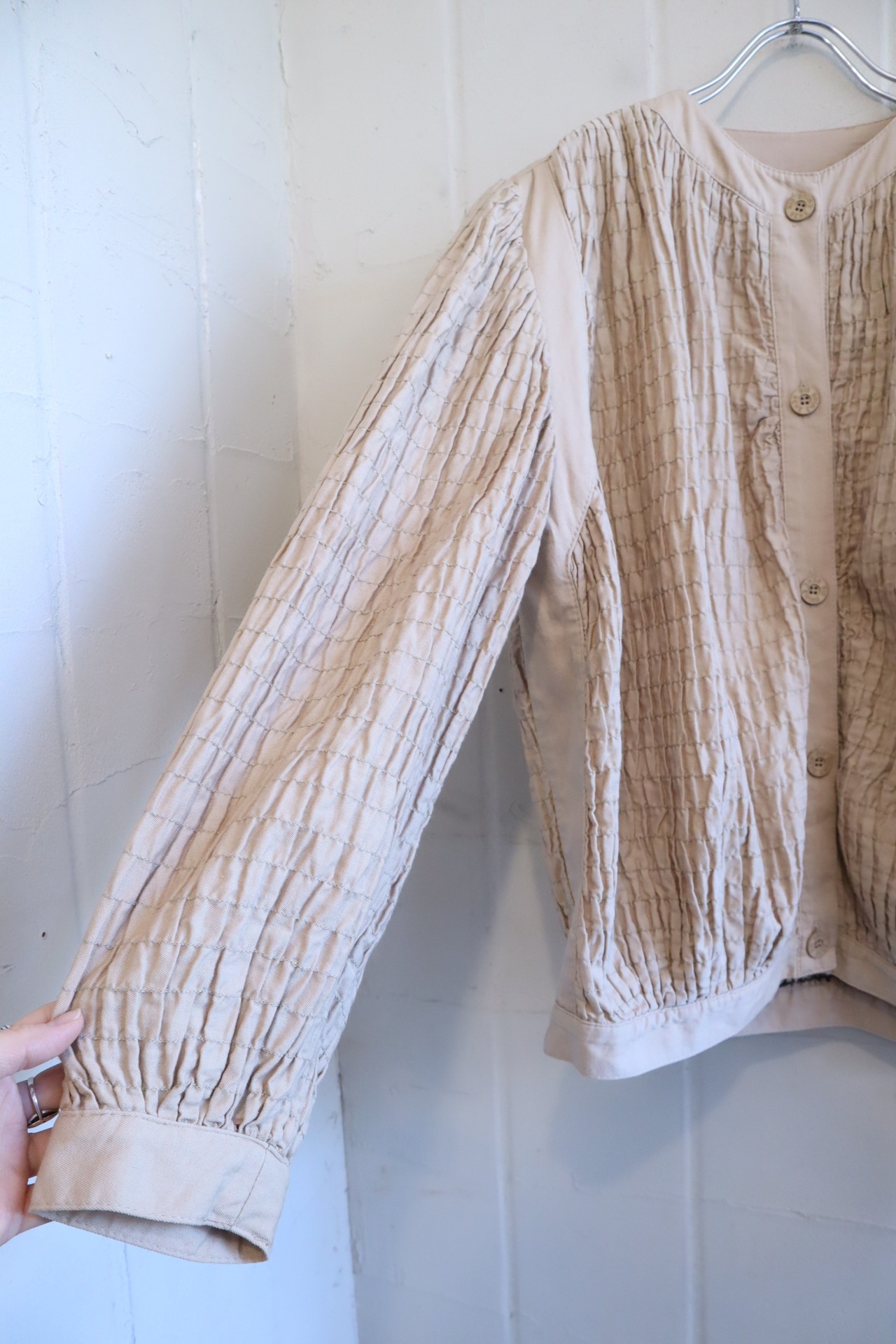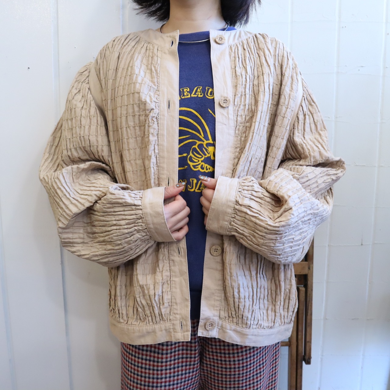 シャーリングの様なクシュクシュとした生地デザインが可愛い80sジャケット。