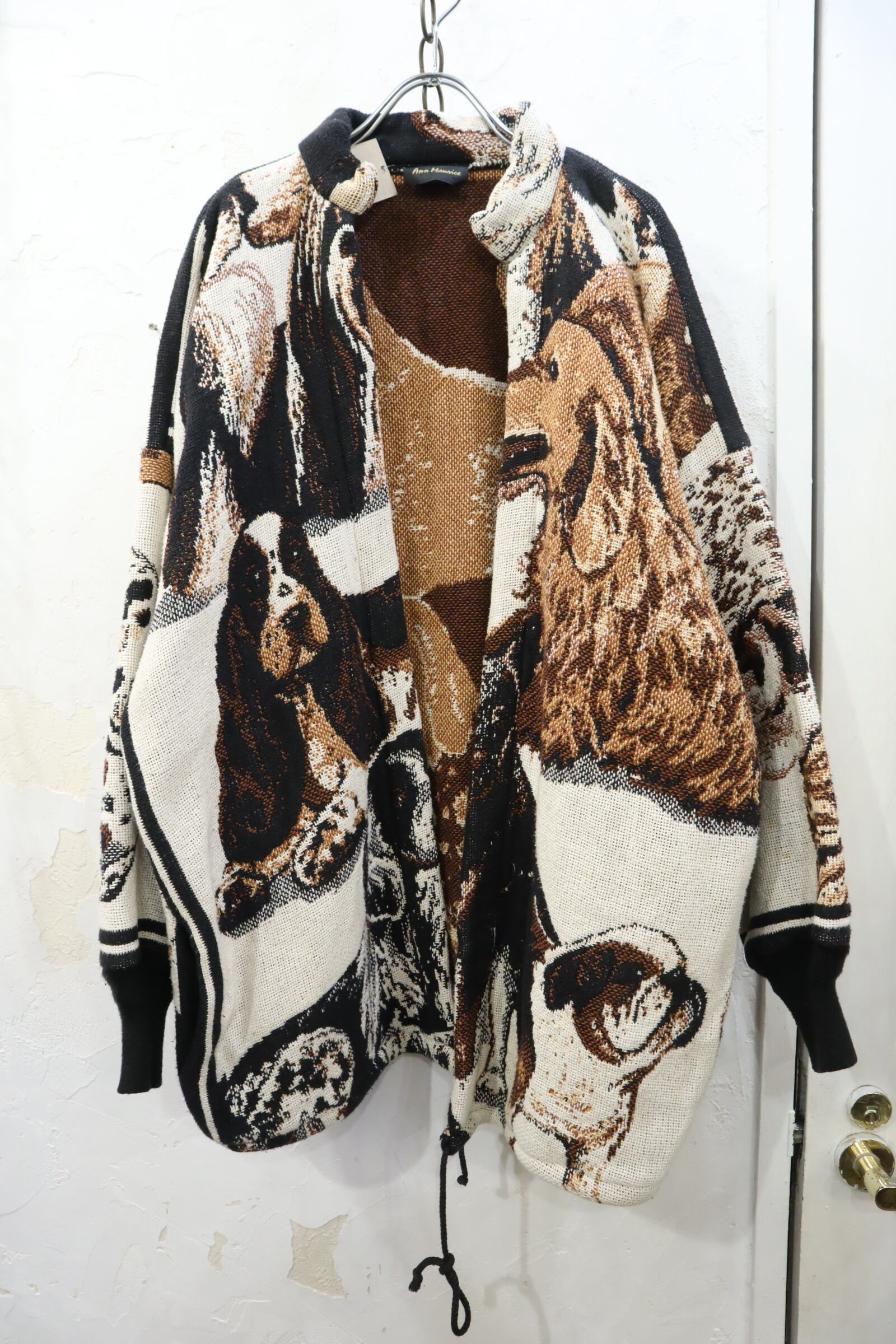 white×black×brown dog pattern gobelin jacket [l-2635]