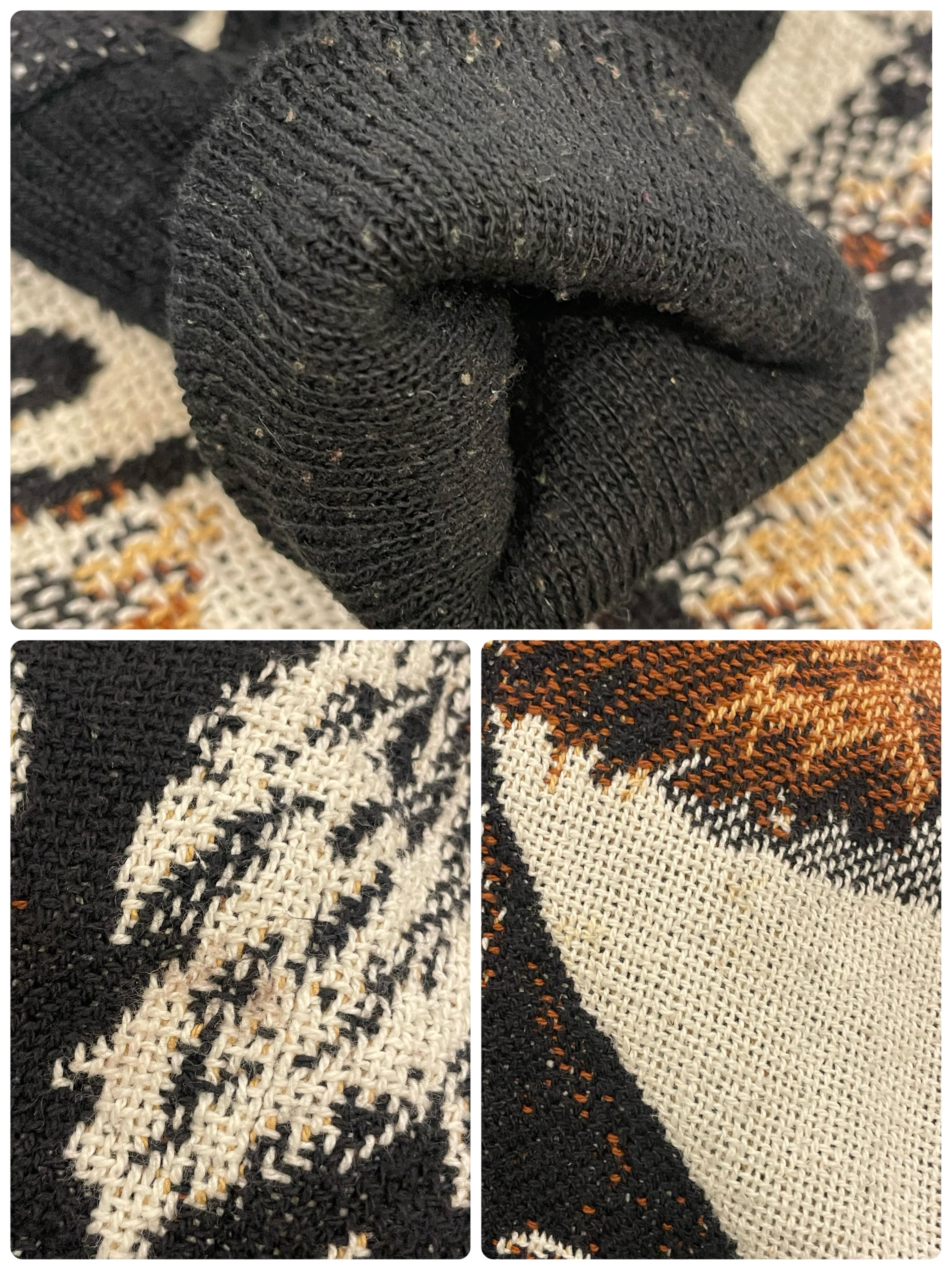 いくつかシミ汚れや生地の毛羽立ちがございますが、あまり気にならない程度かと思われます。