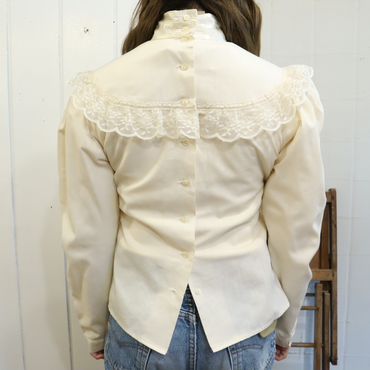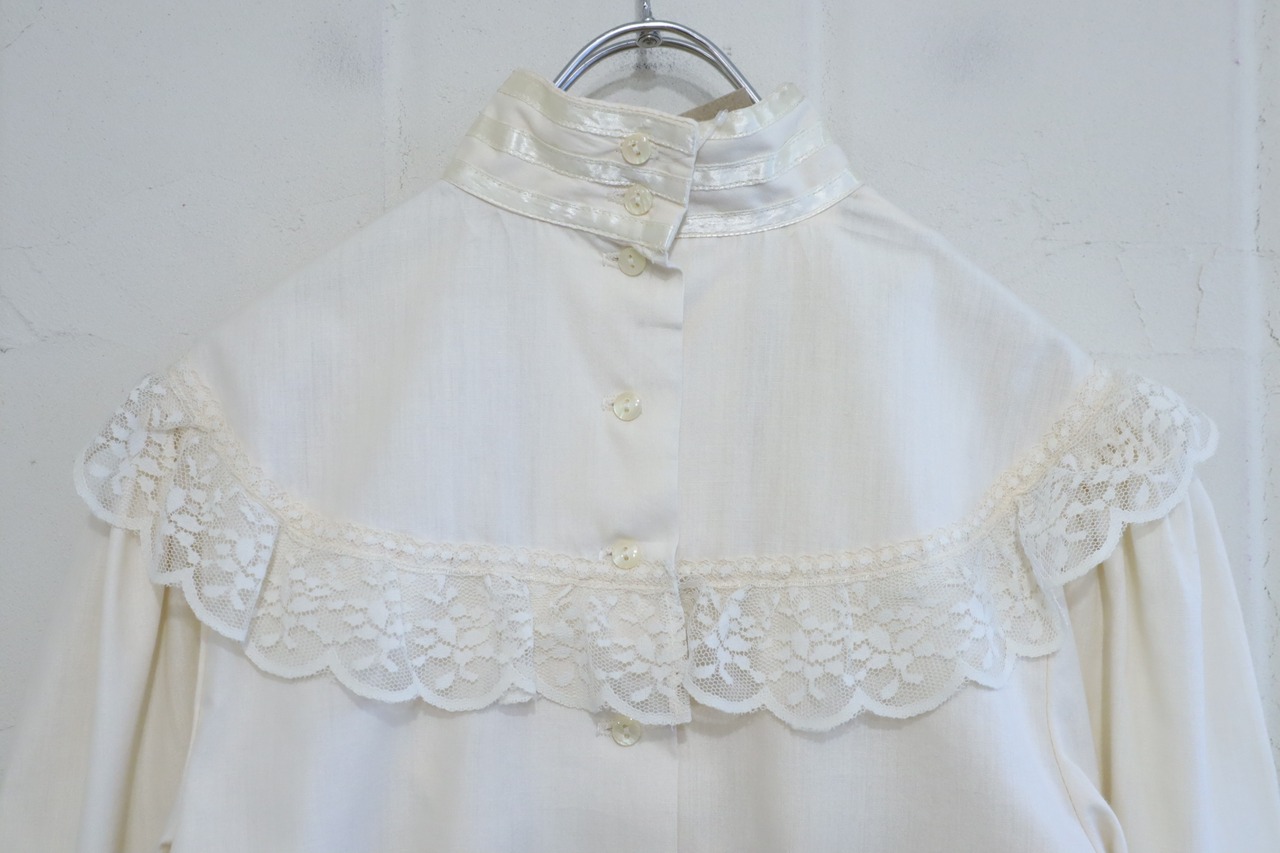 90s GUNNE SAX ivory standcollar lace design blouse [l-2638]