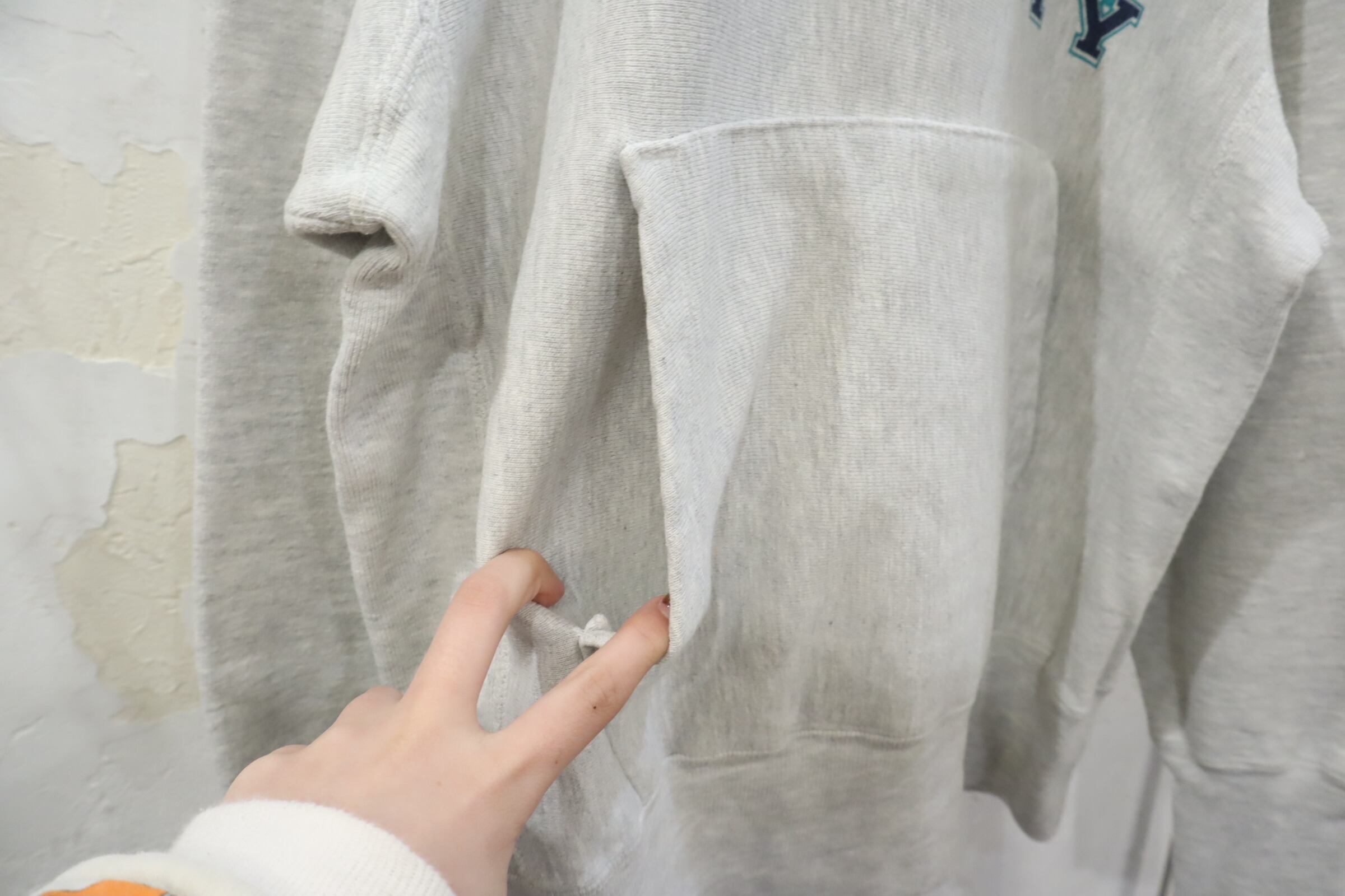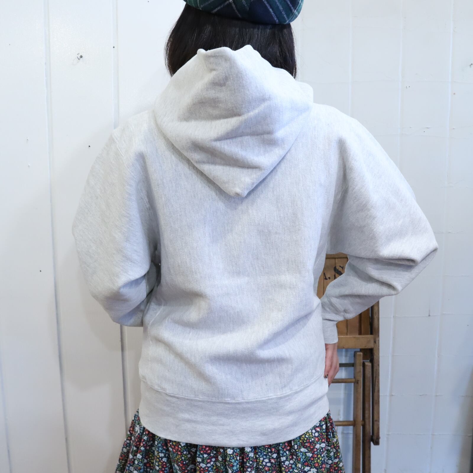 90s champion gray×green college print reverse weave hoodie sweat [l-2640]
