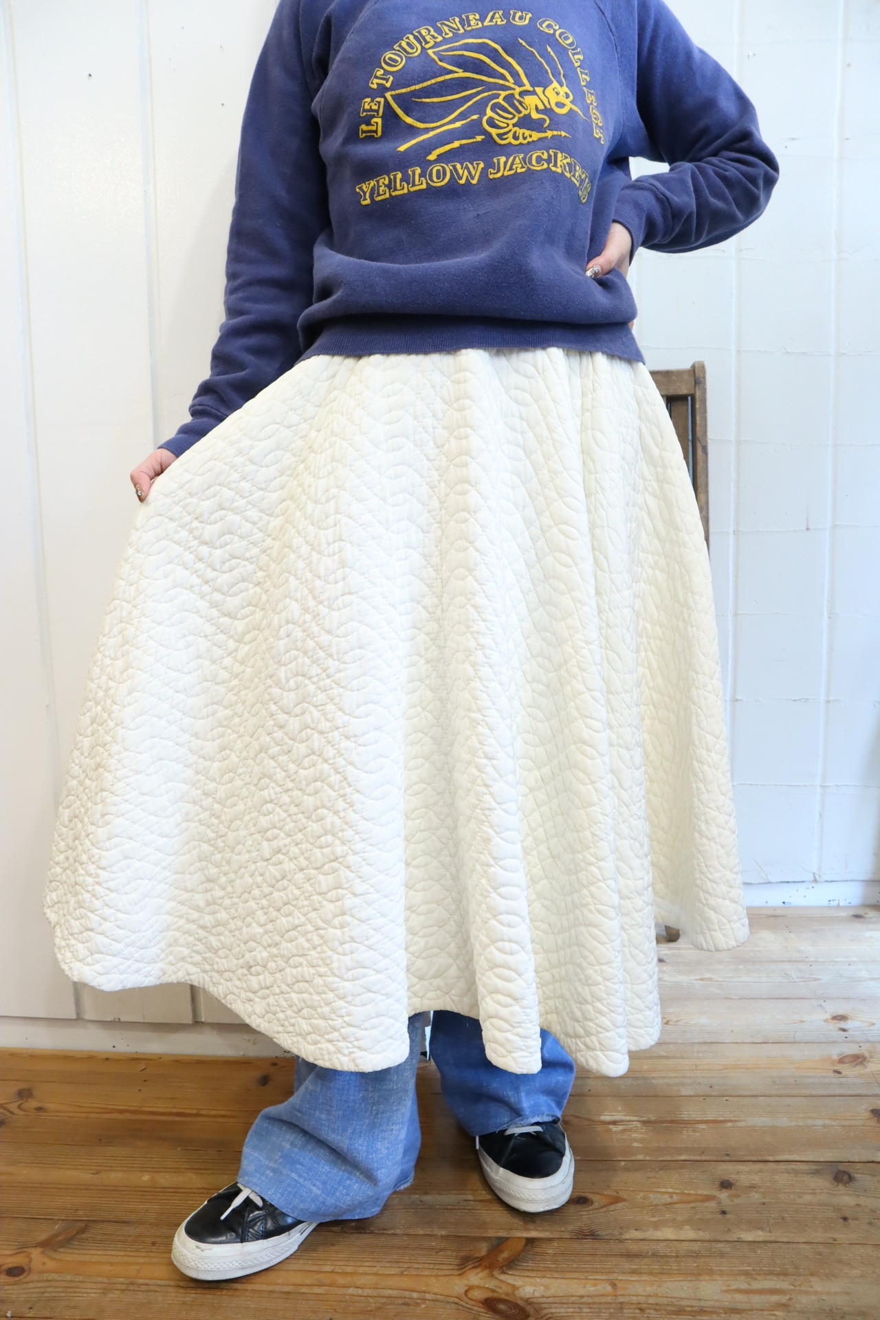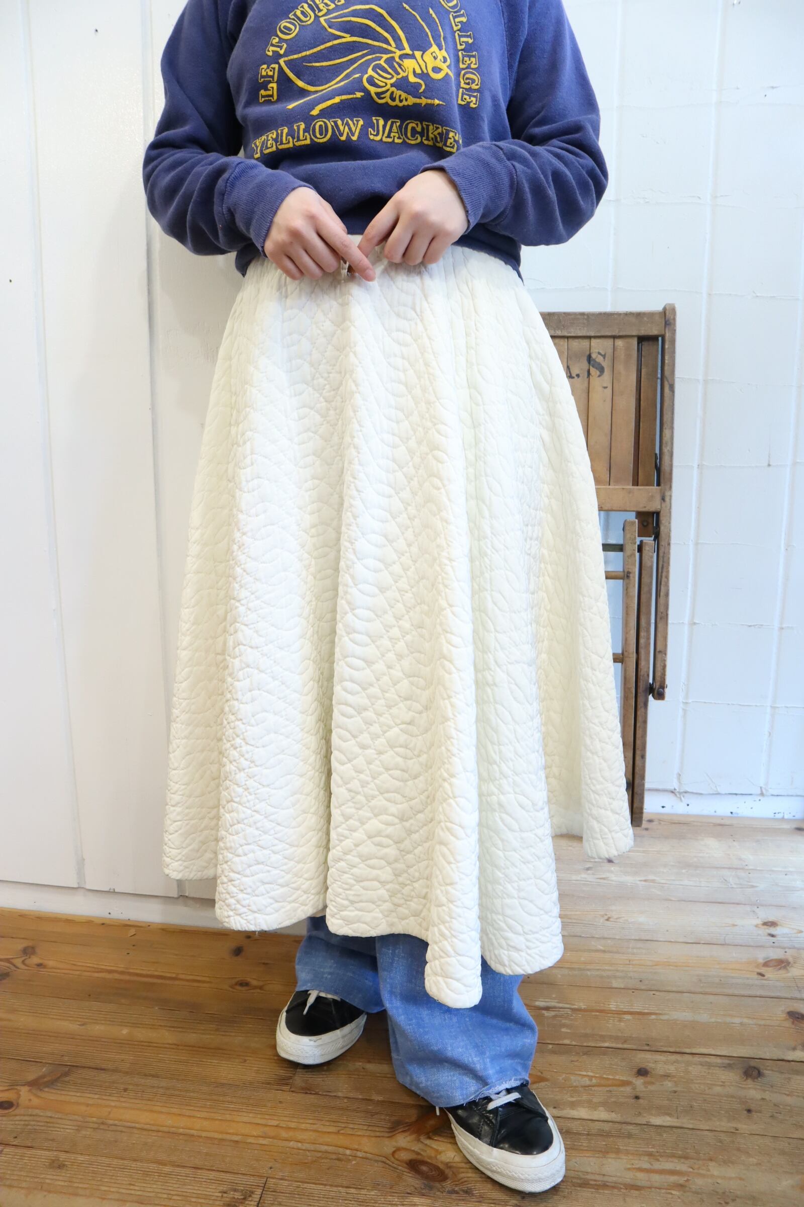 うねうねしたキルティング模様とサーキュラーシルエットが素敵なヴィンテージスカート。