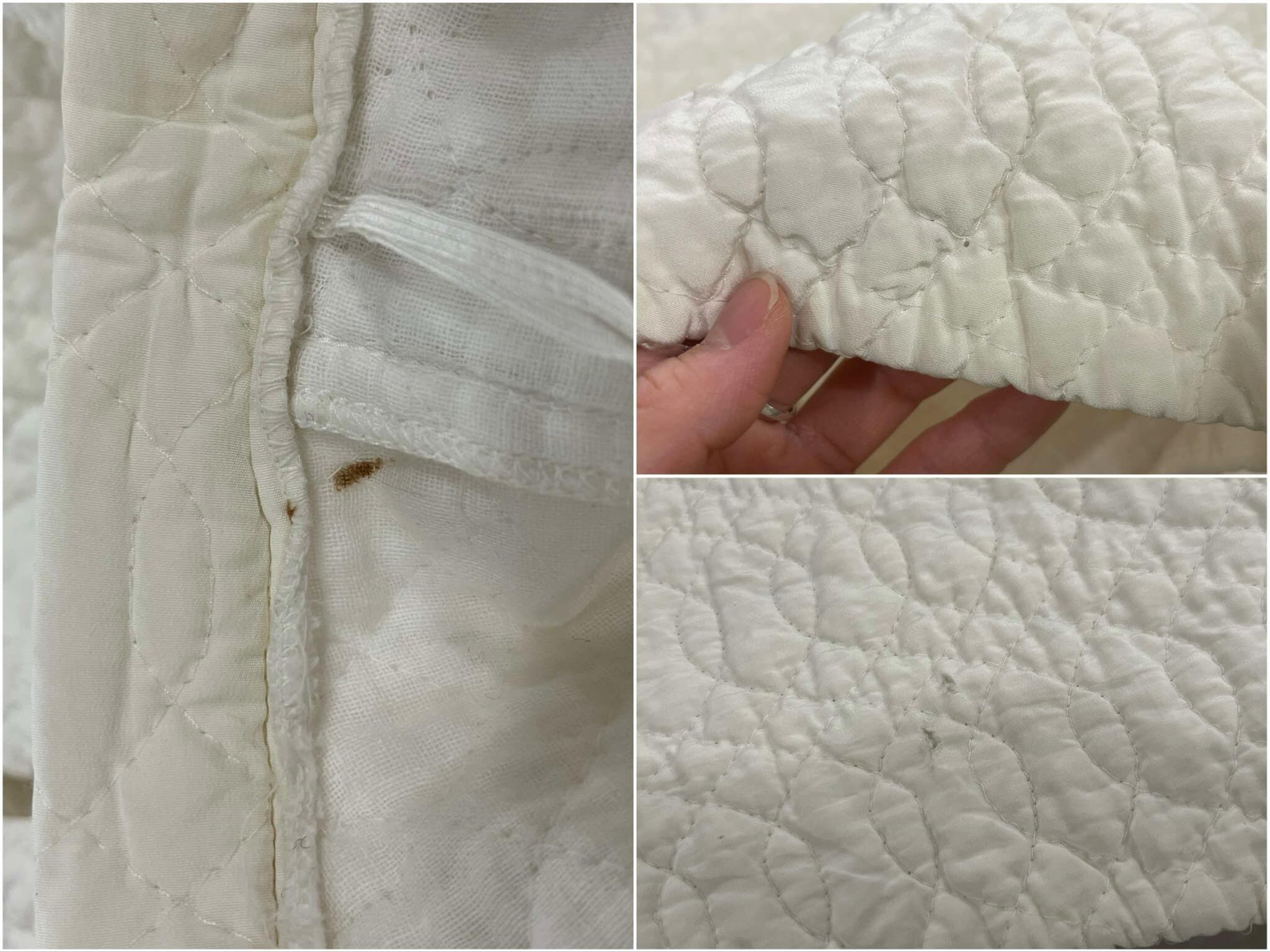 内側にシミ、裾あたりにキズや小穴が見受けられます。