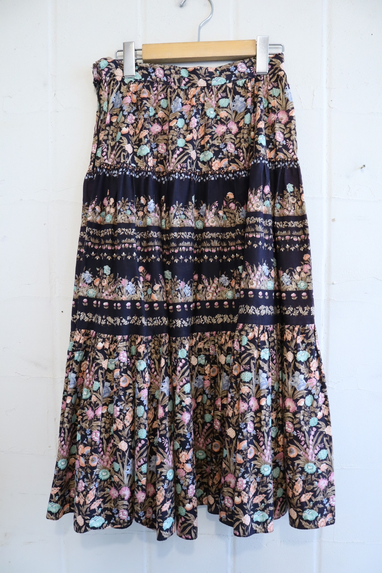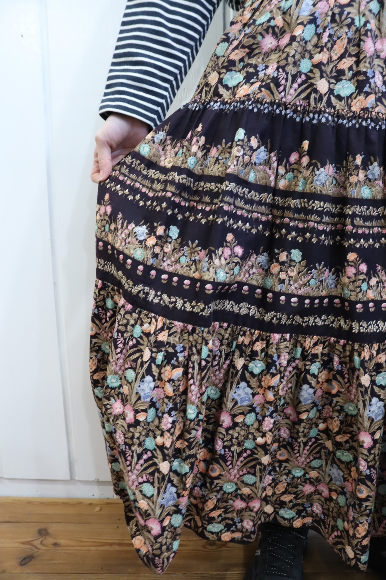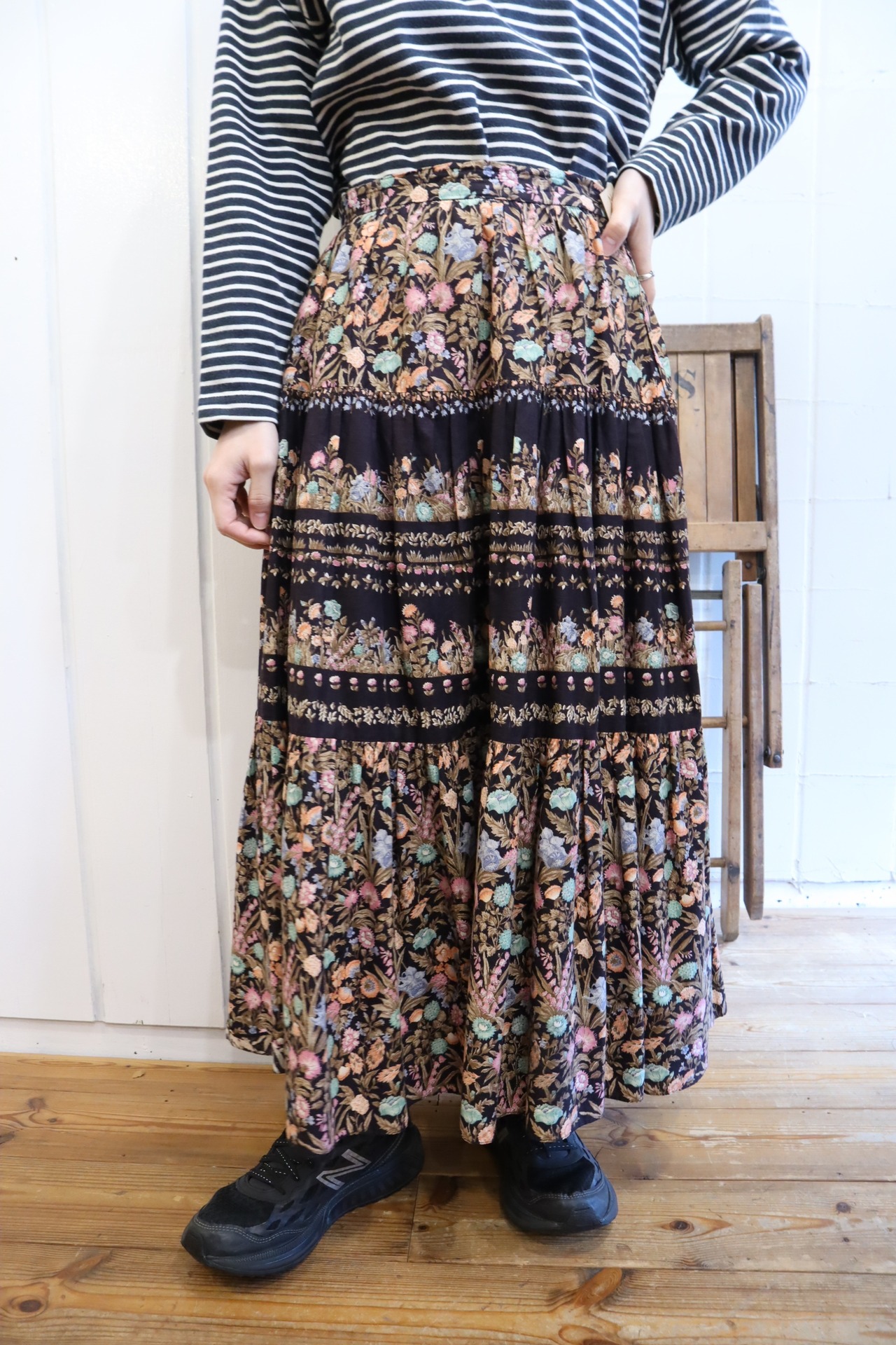 black×lightbrown flower pattern tiered skirt [l-2671]