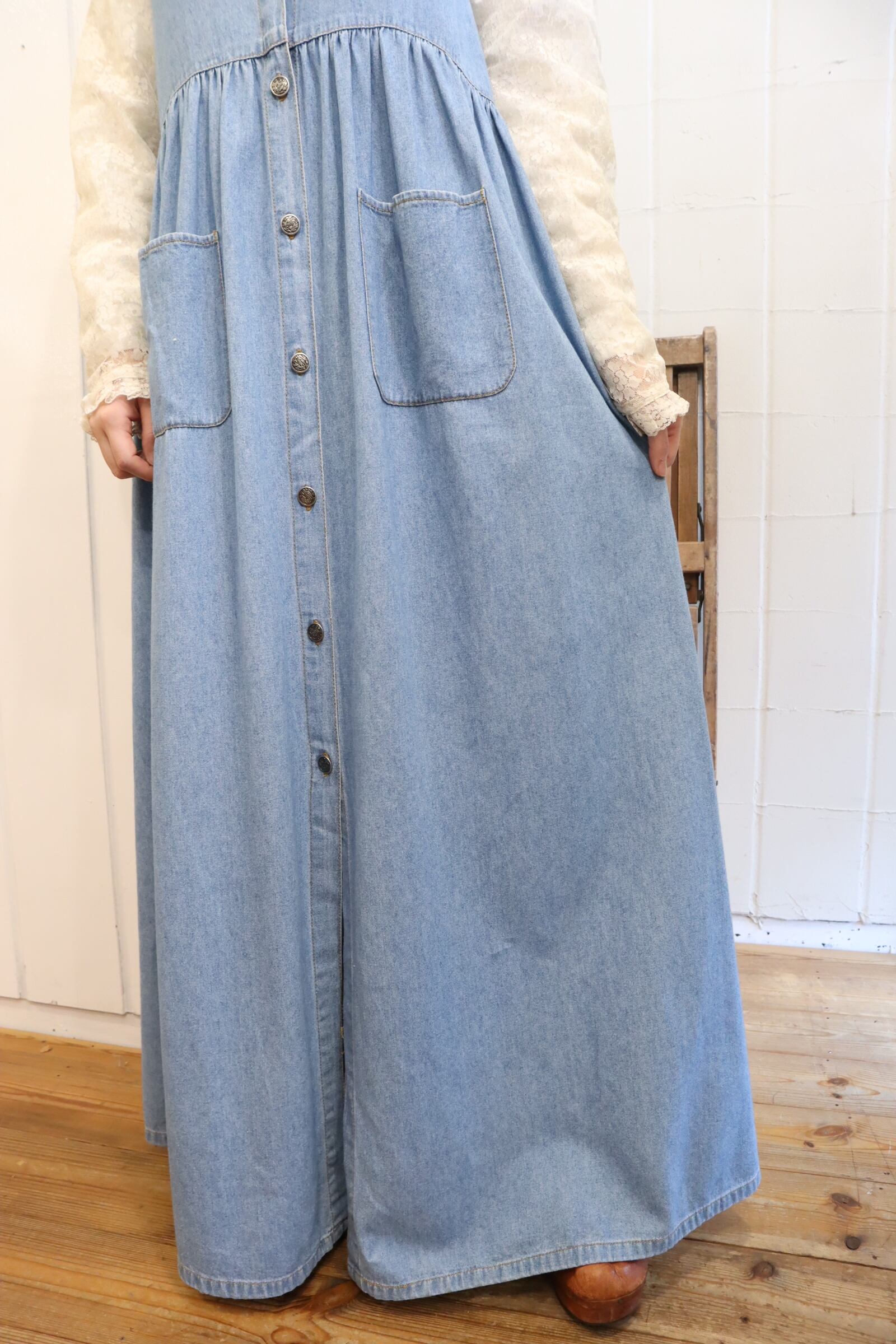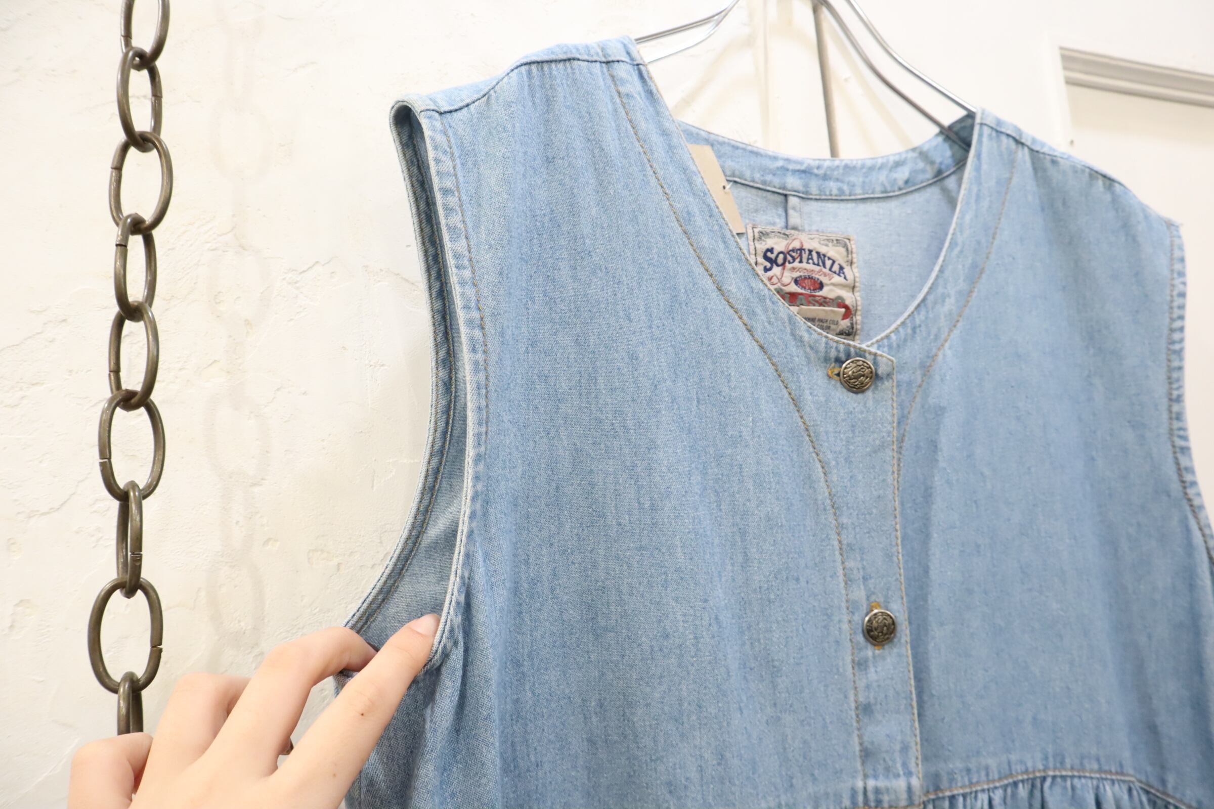 lightblue plain sleeveless denim dress [l-2673]