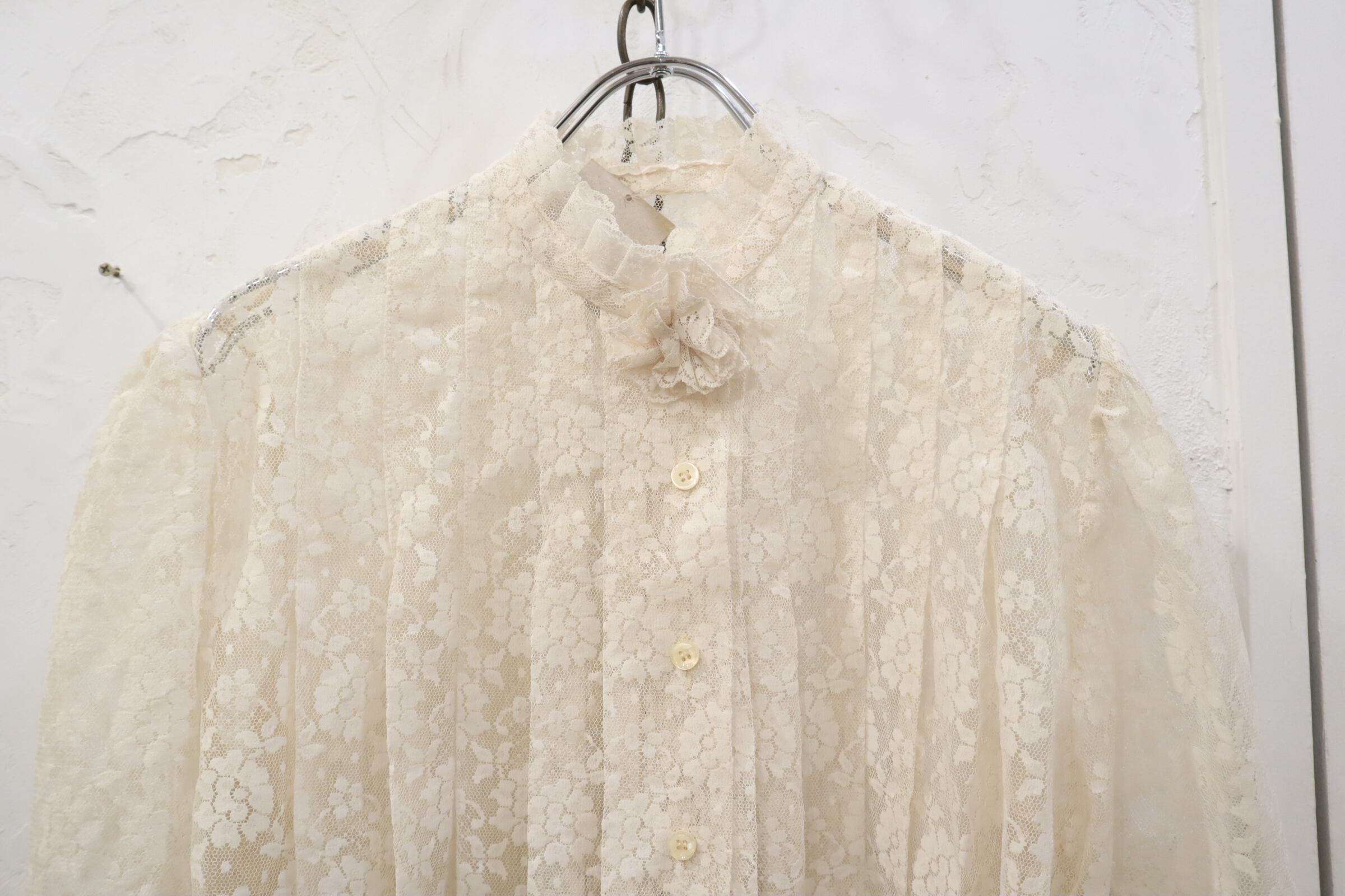 ハイネックで高貴な印象が素敵な総レースブラウスです。