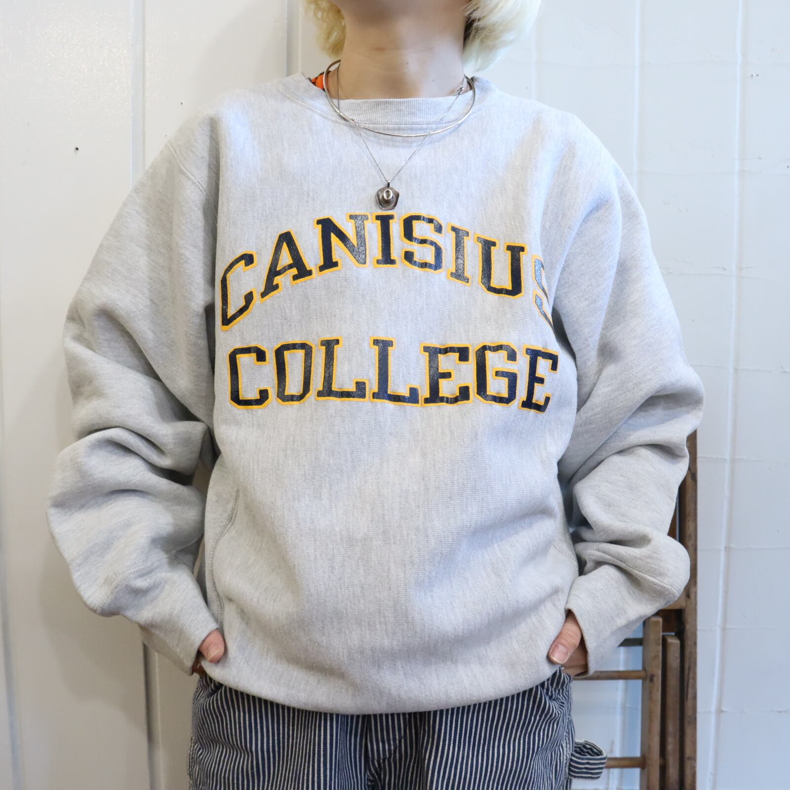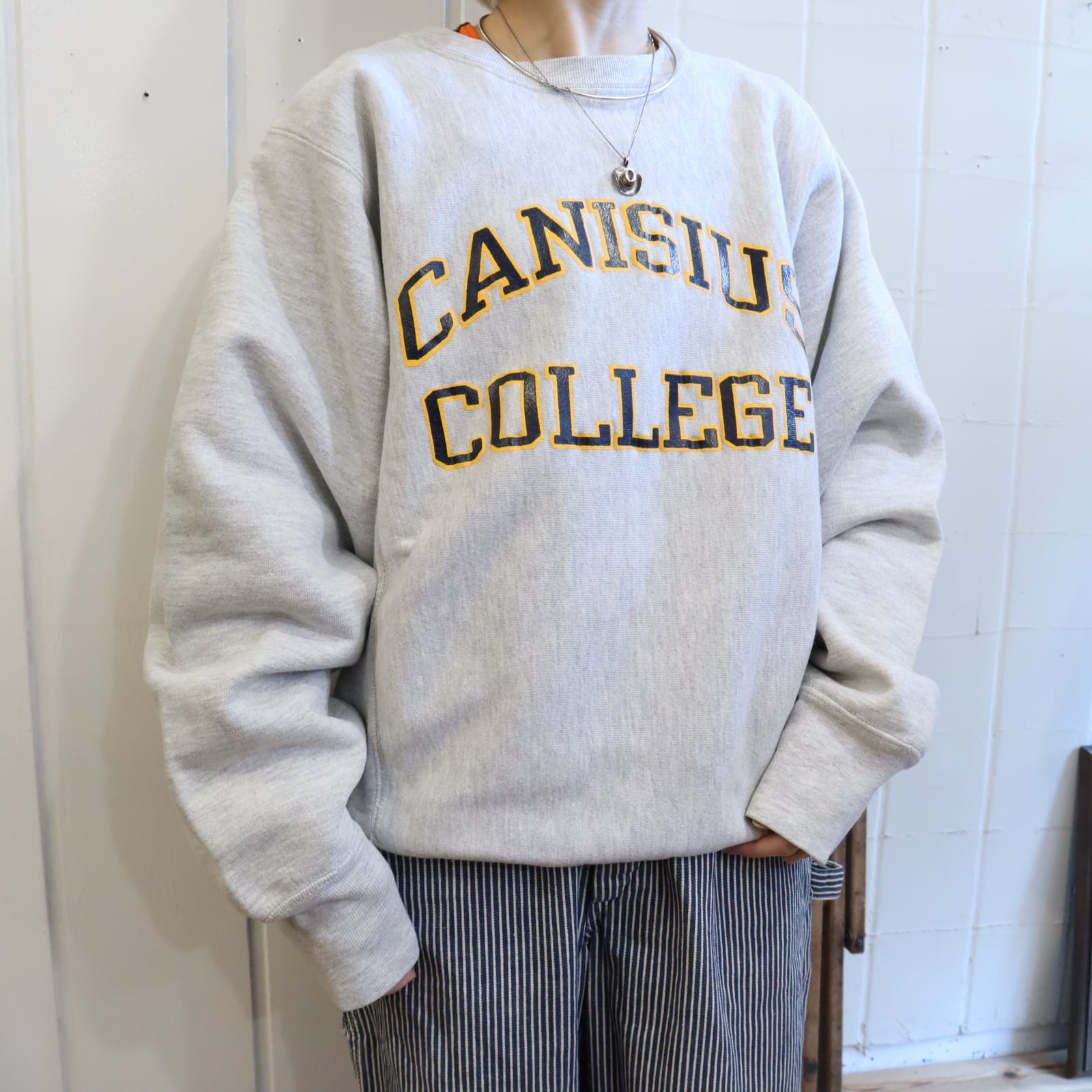 80s Champion light gray×yellow rubber print reverse weave sweat [l-2675]