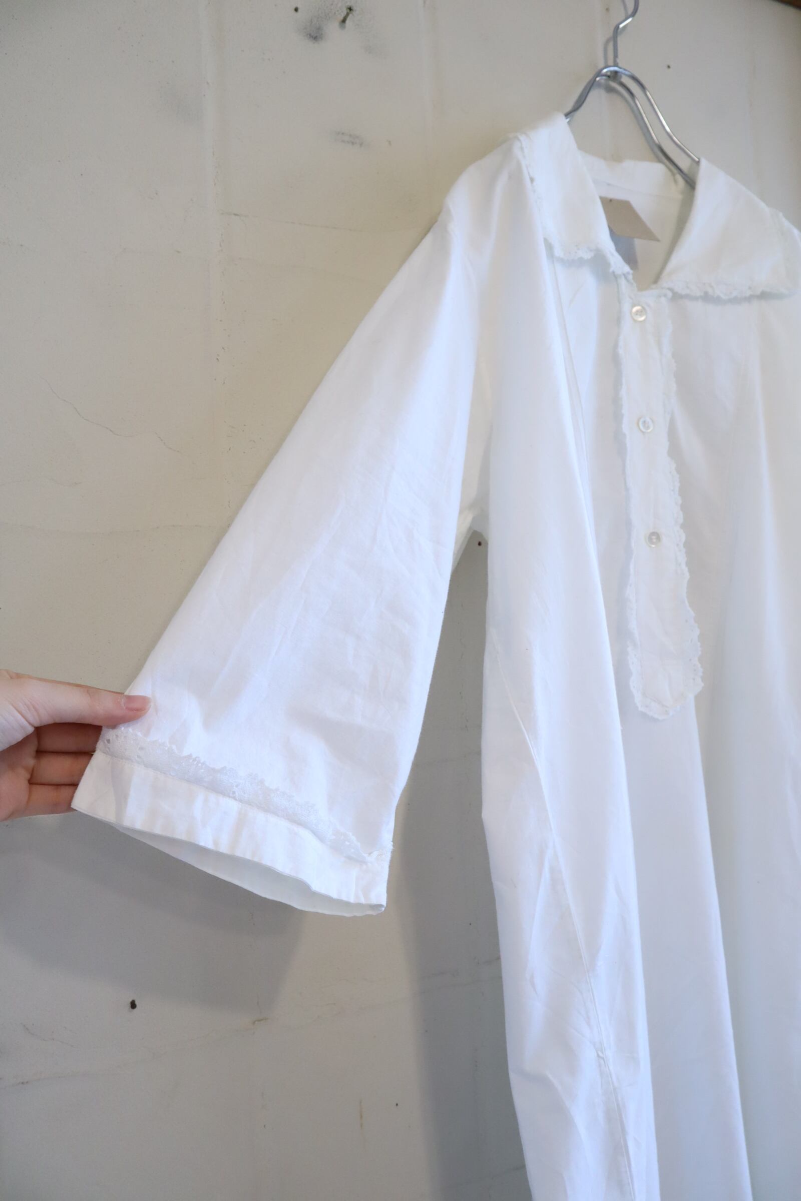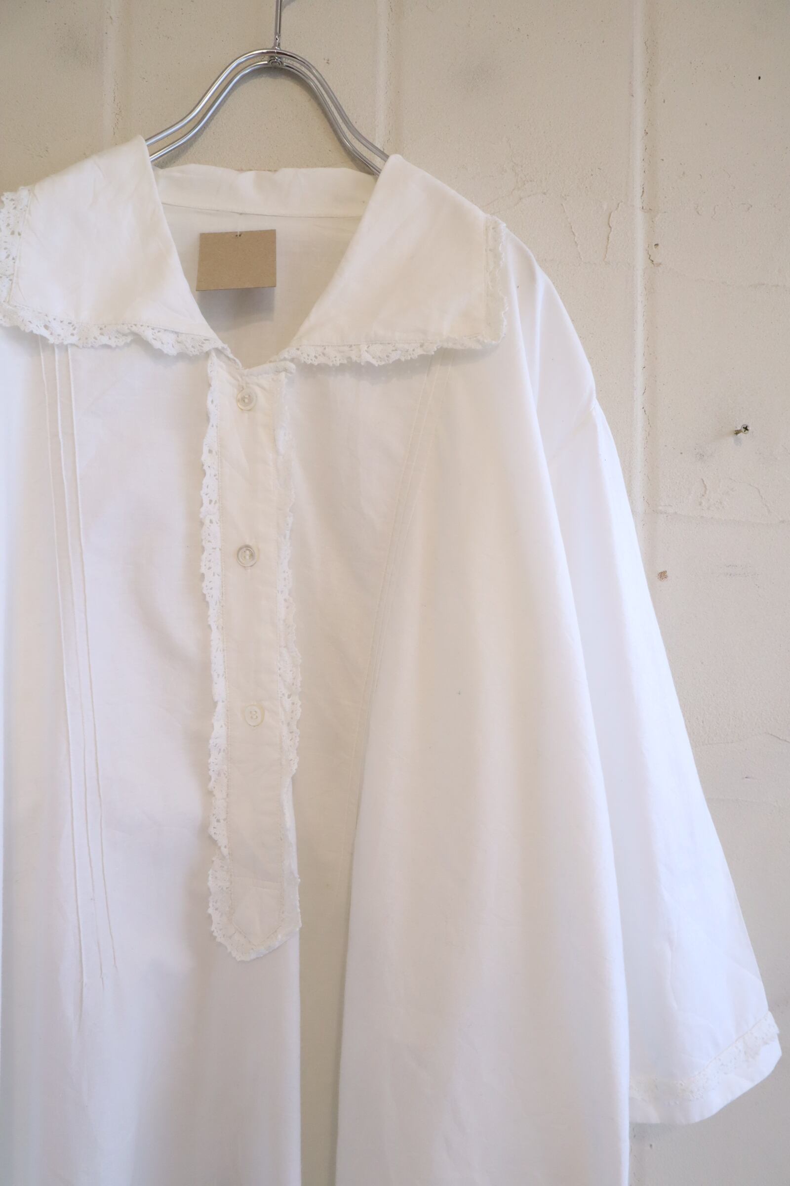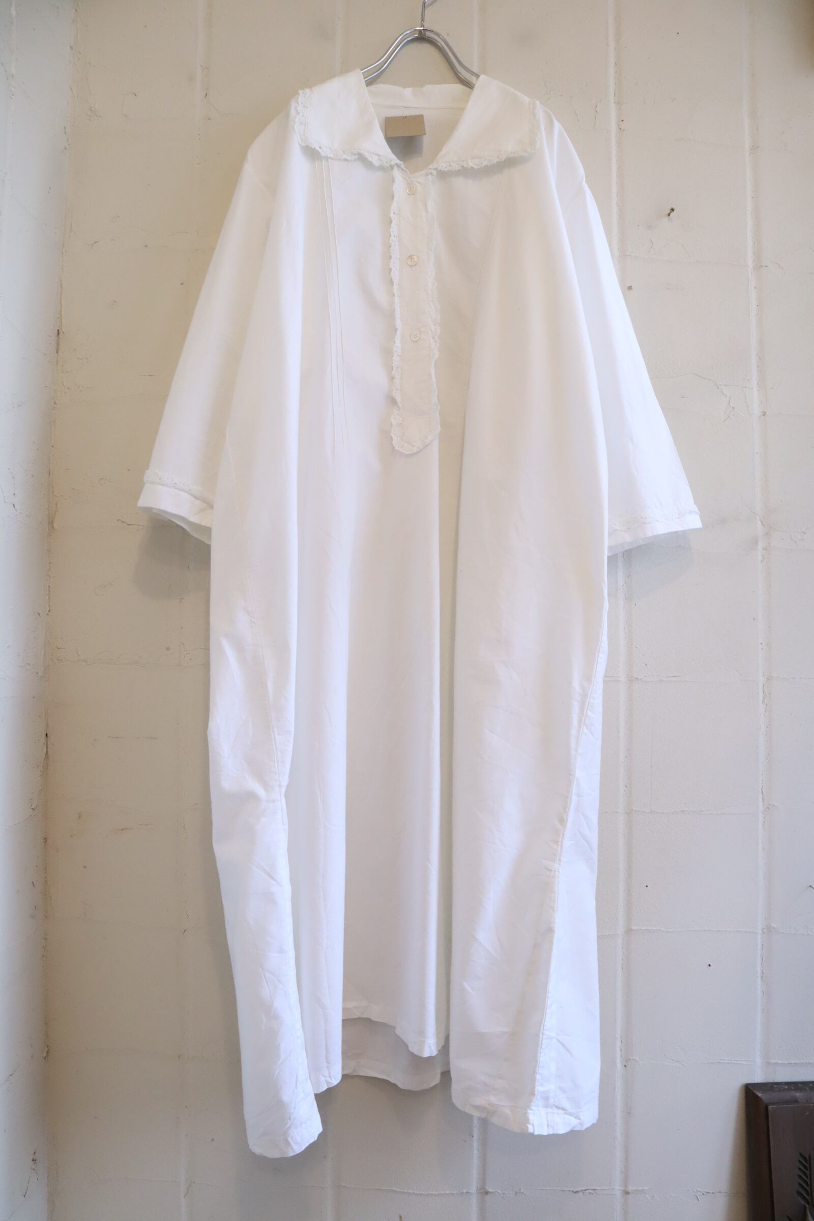 大きめな襟とかぎ編みのレースが可愛いヴィンテージのホワイトドレス。
