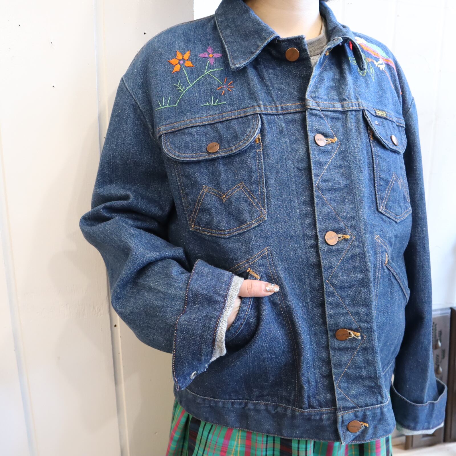 made in USA MAVERICK indigoblue×colorful embroidery denim jacket [k-2699]