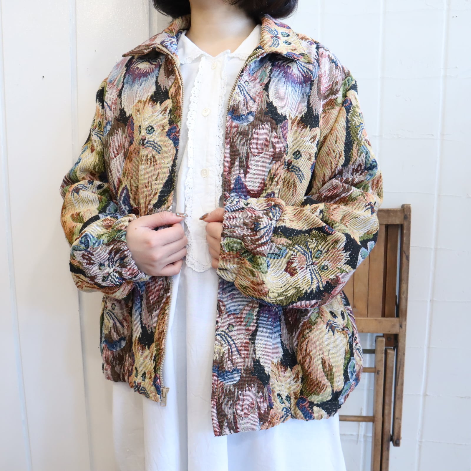cream yellow× blue cat pattern gobelin jacket [l-2709]