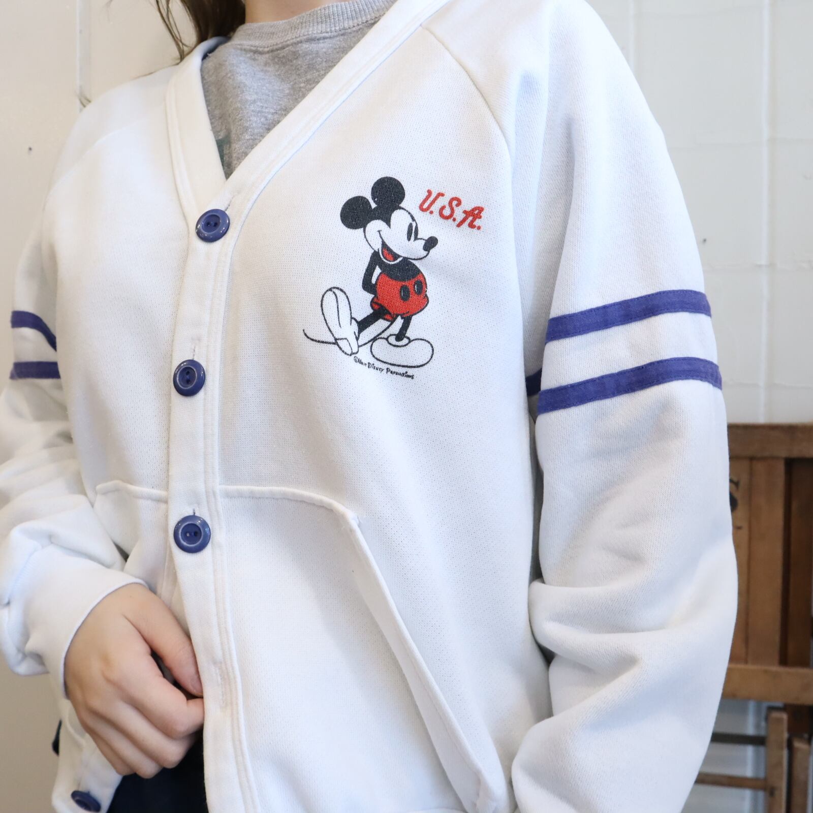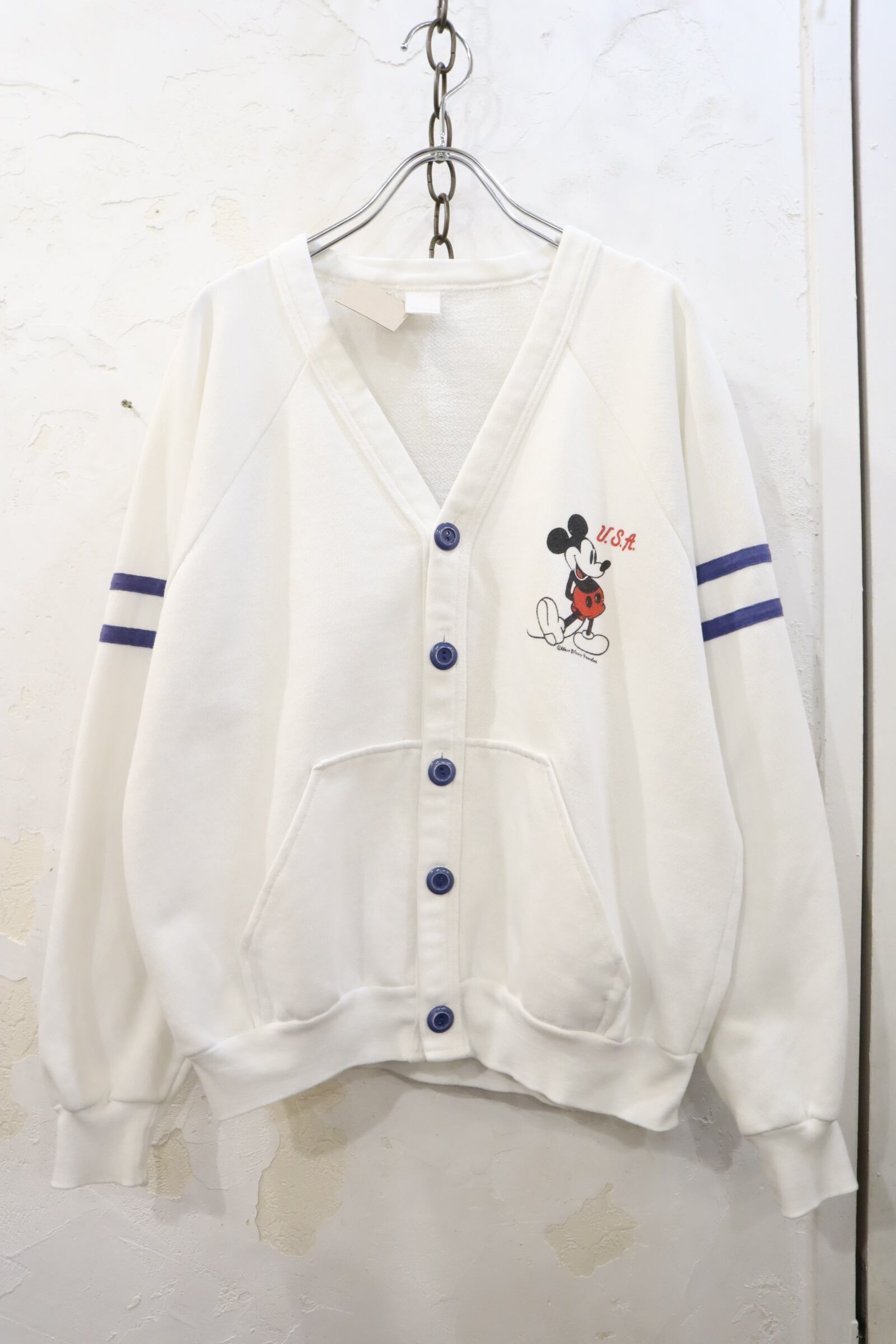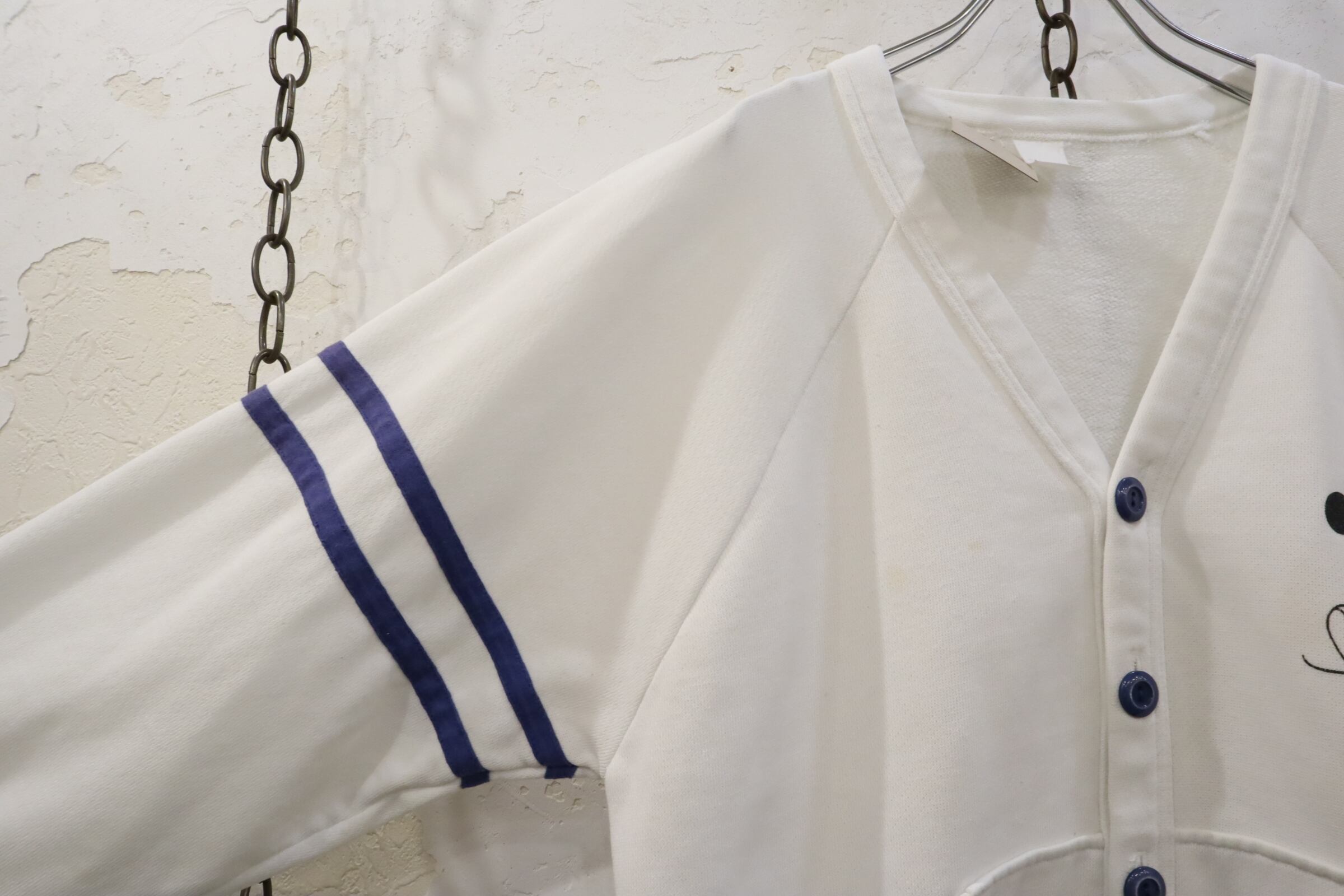 80s- made in USA white×navy character pattern cardigan sweat [l-2710]