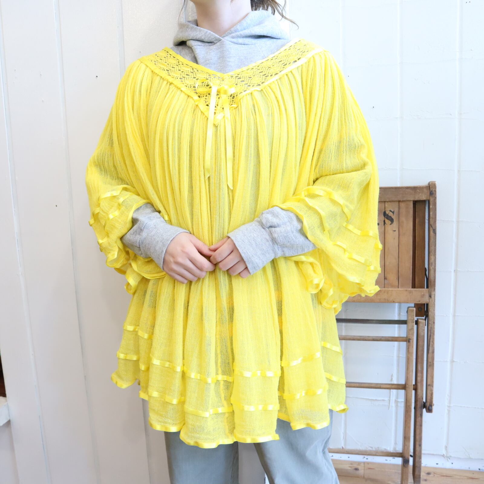 明るいイエローが可愛くも、袖丈はやや長めで大人の方でも着やすい一点かと思います*