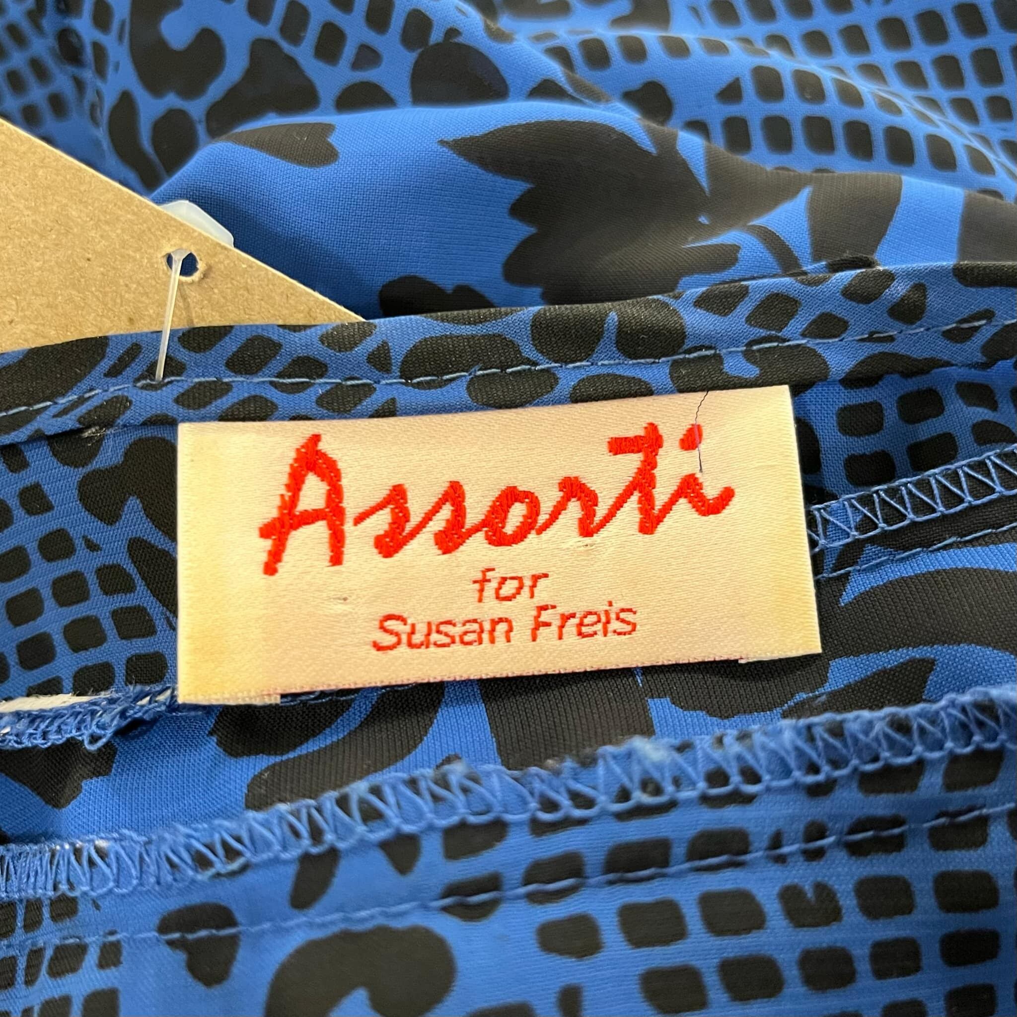 80s Susan Freis blue×black frill design dress [l-2740]