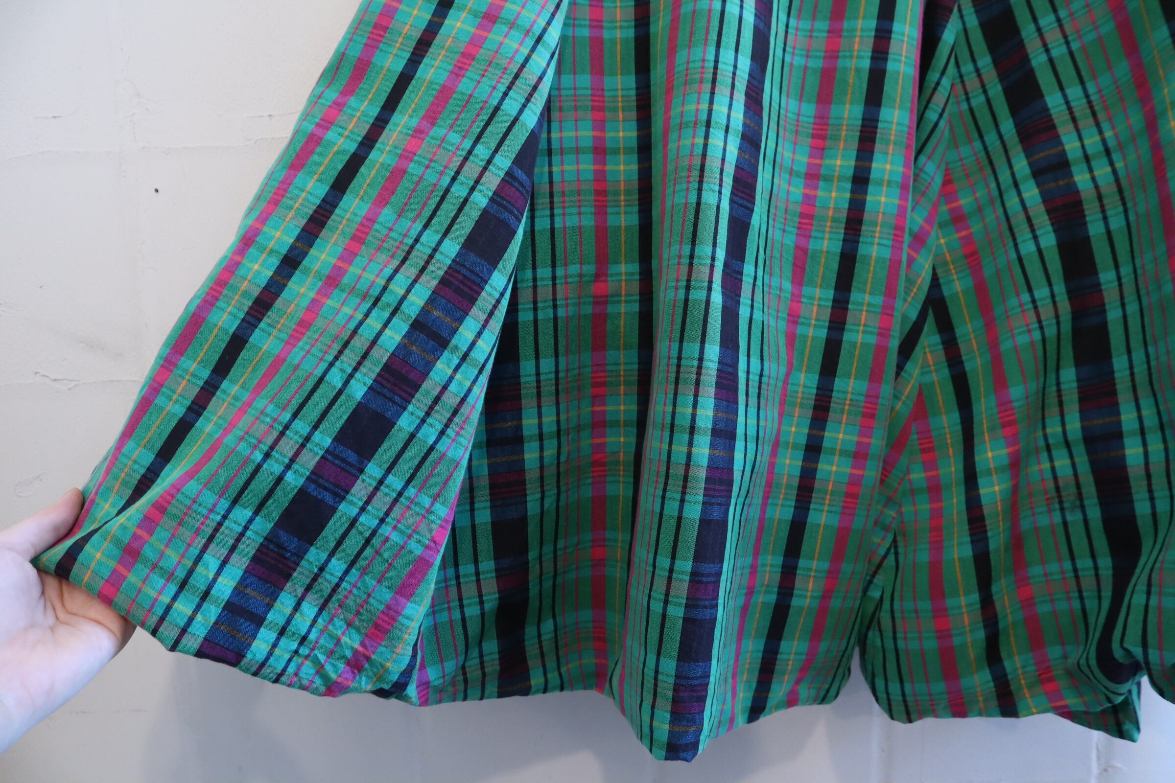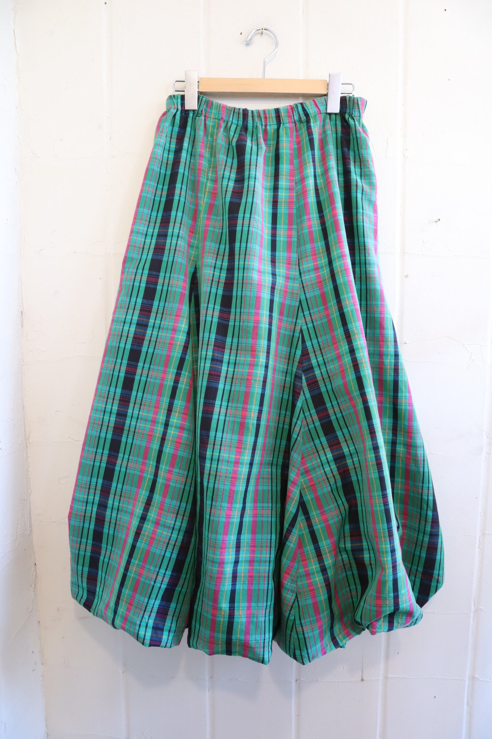 80s-90s green×pink plaid balloon skirt [l-2756]