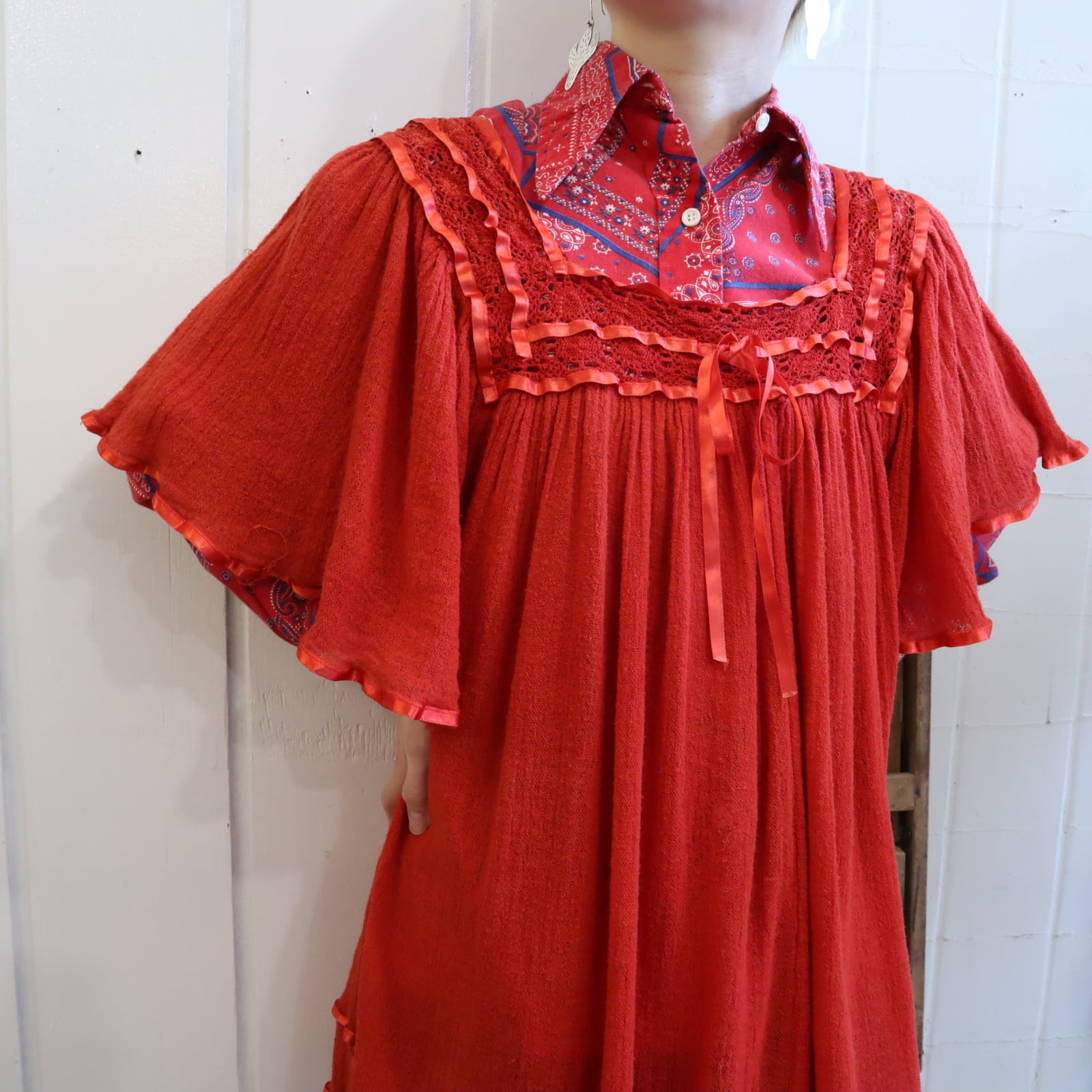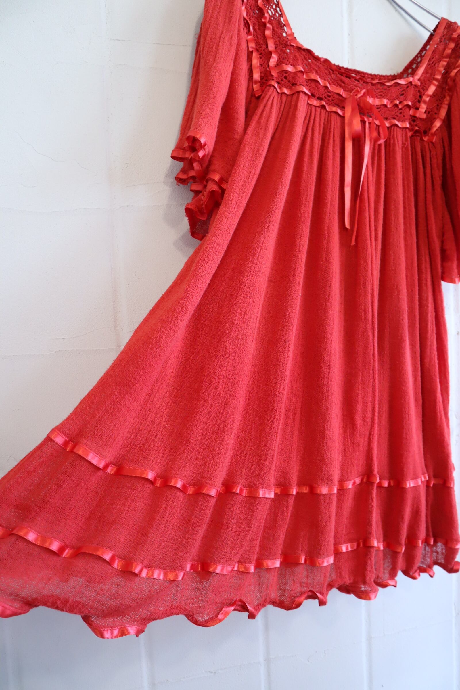 鮮やかなレッドカラーが素敵なメキシコガーゼチュニック。