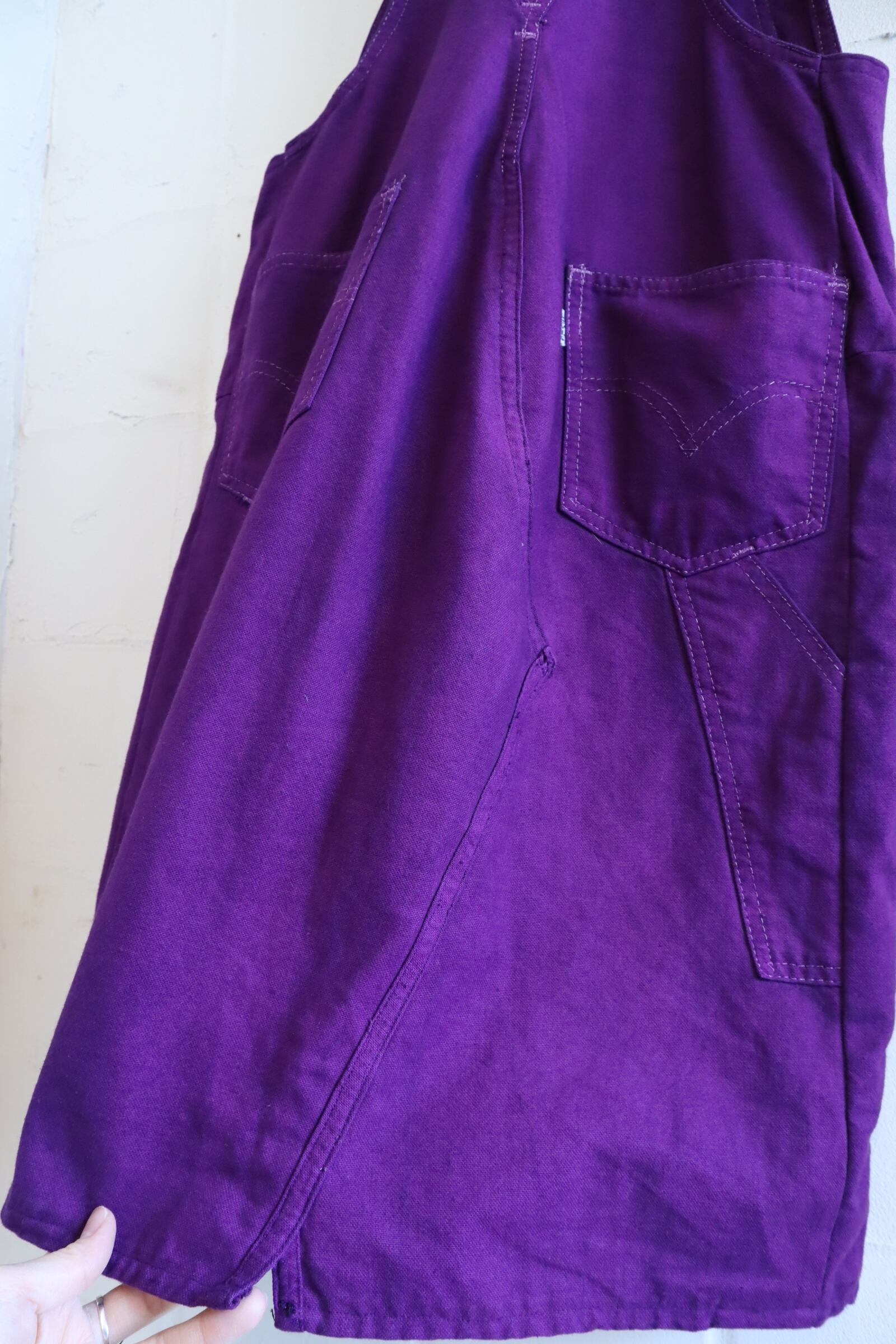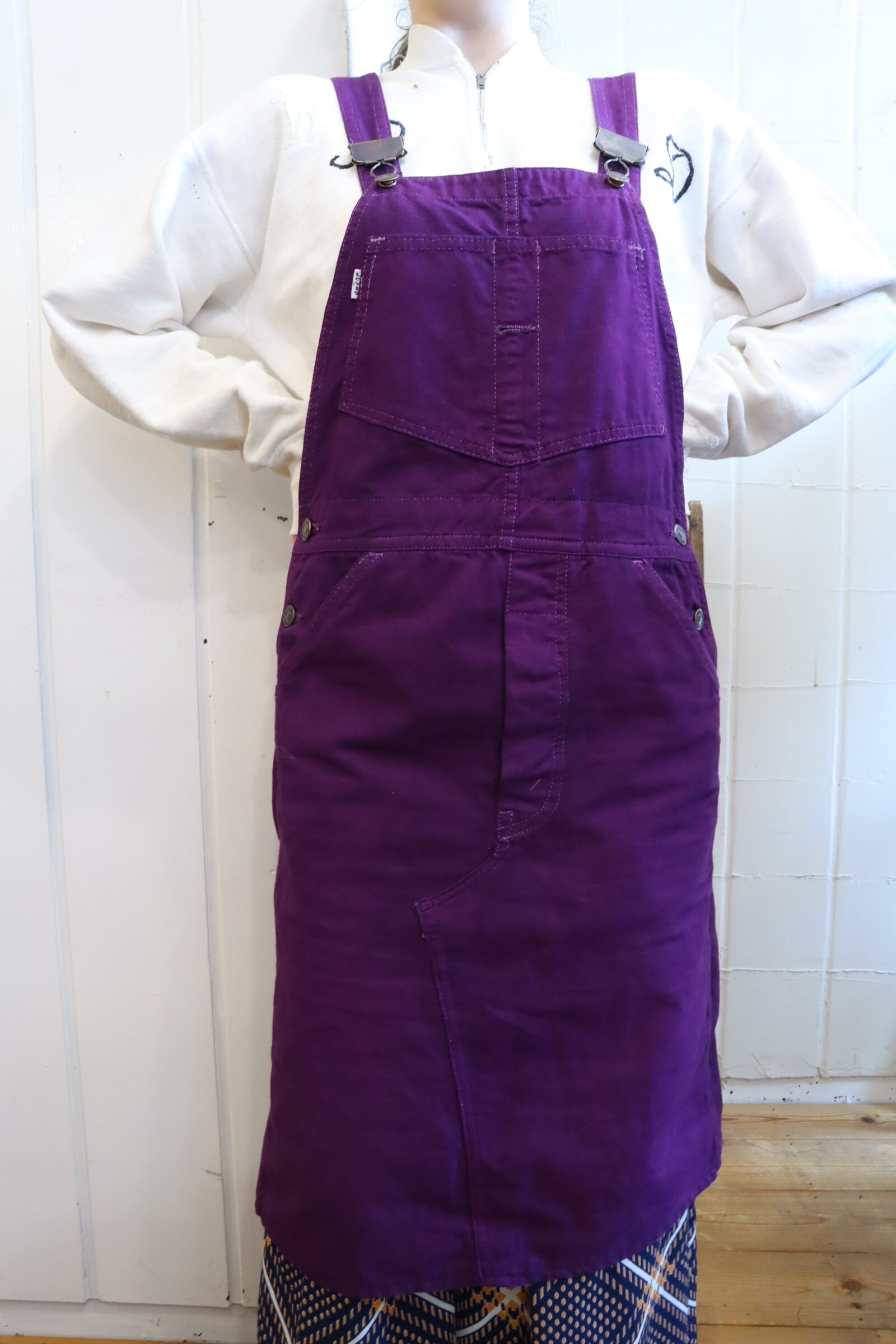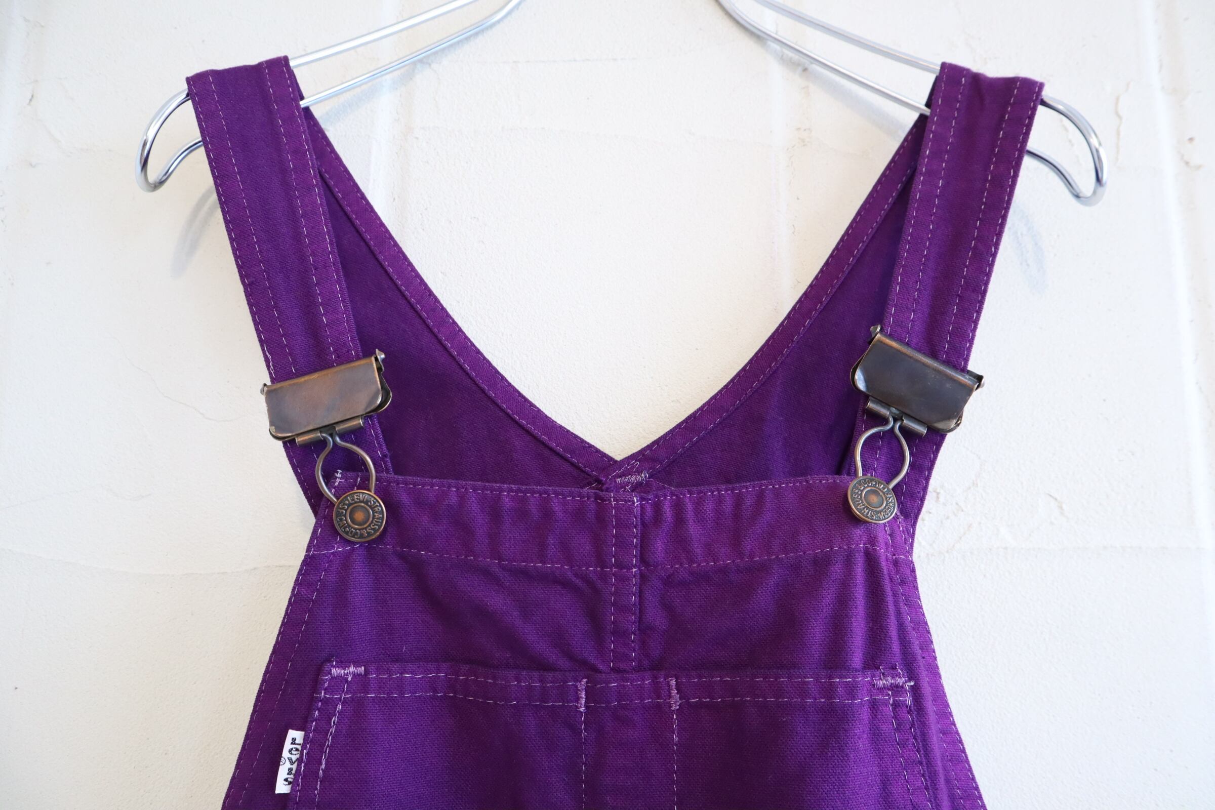 濃いパープルのお色味が可愛いLevi’sのオーバーオールスカート。