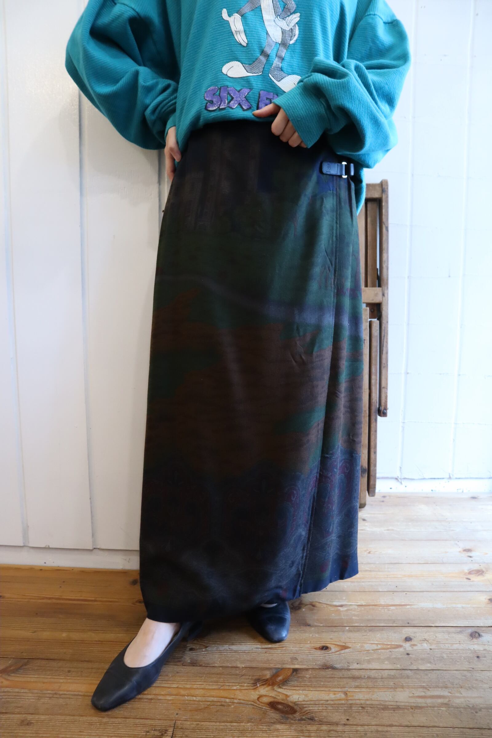 Ralph Lauren darkgreen×brown scenery print wrap skirt [k-2845]