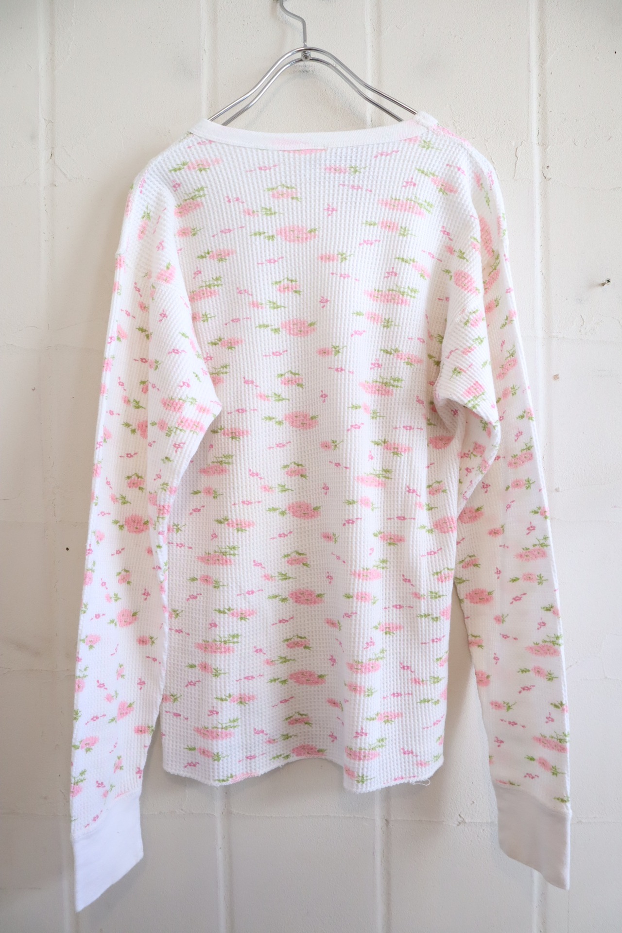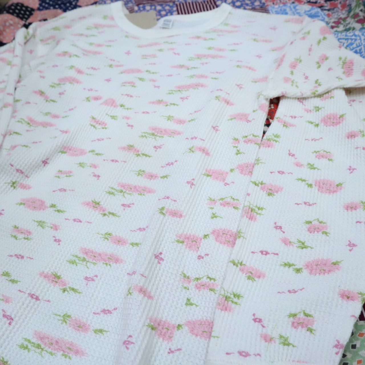 ピンクカラーのお花が可愛いサーマルトップス♡