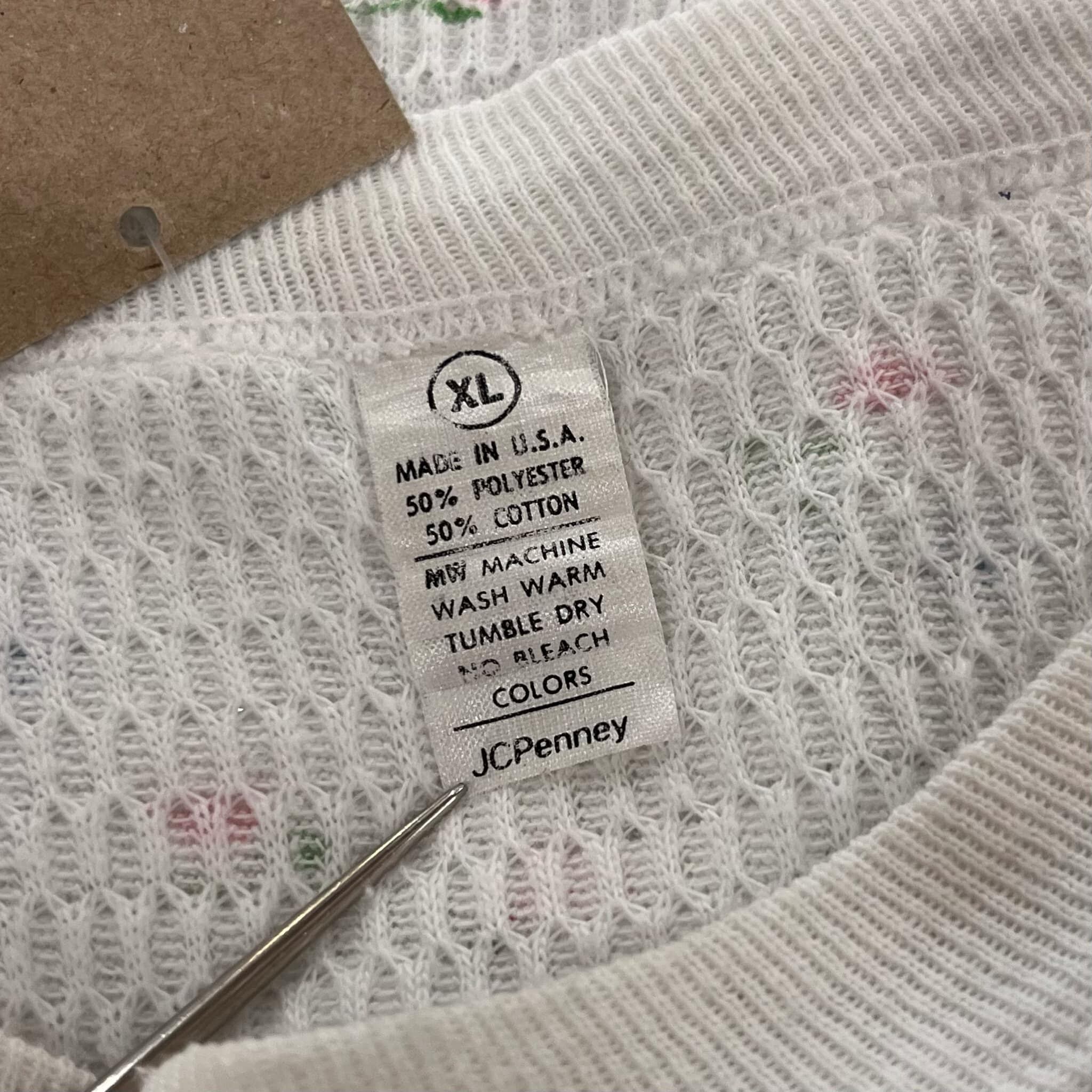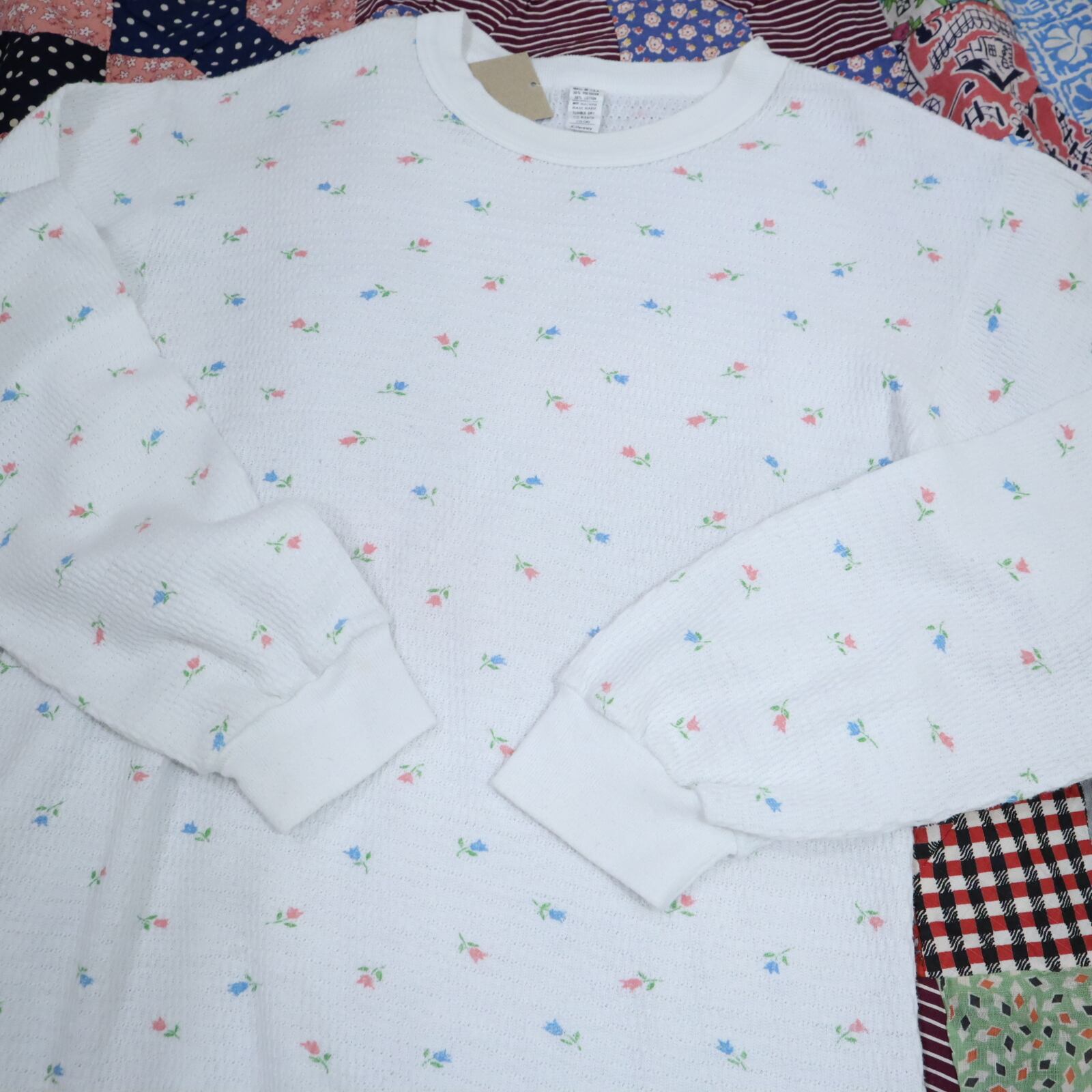 made in USA white×pink flower thermal tops [l-2856]