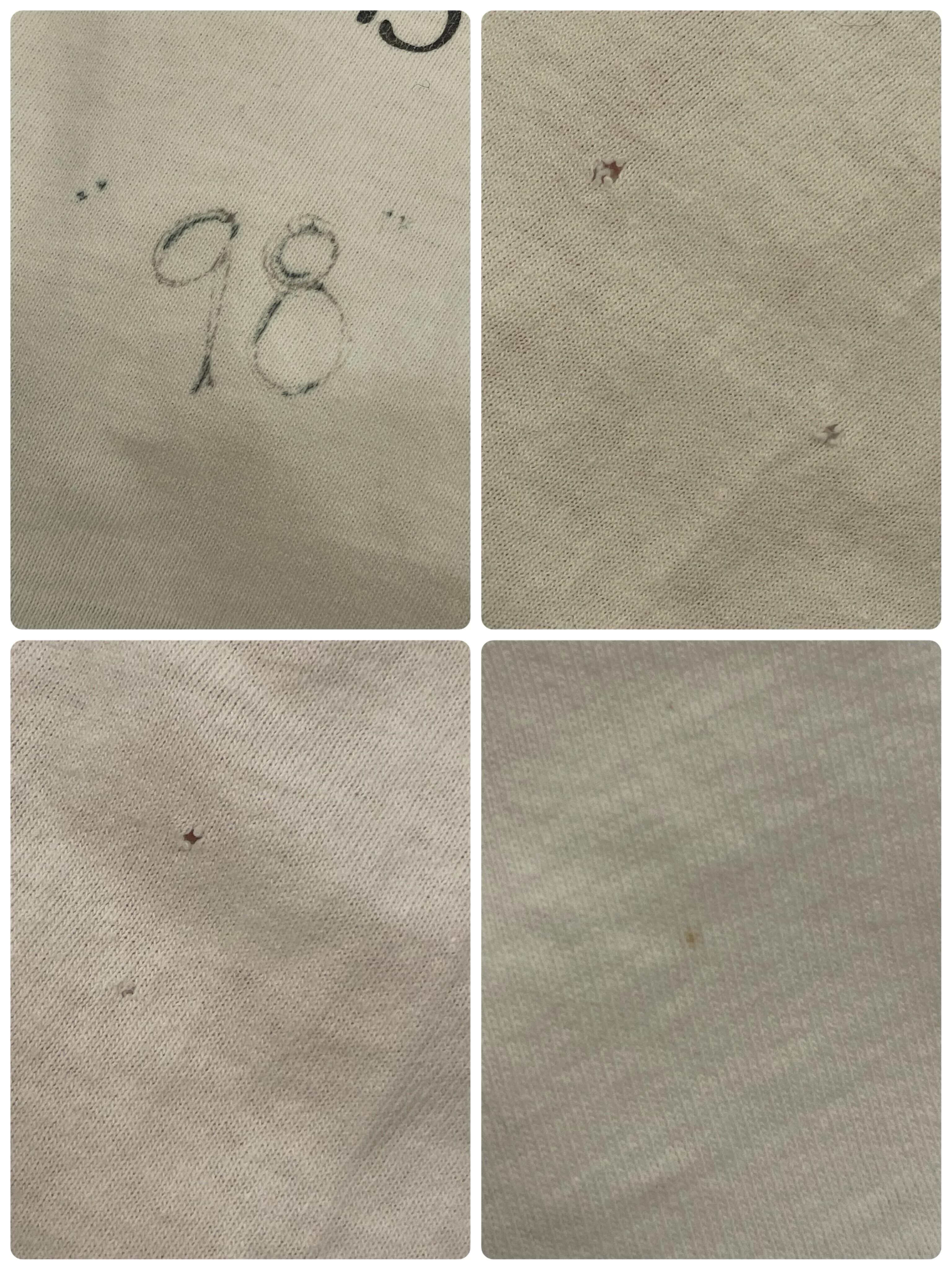 数か所シミ汚れや小穴、一箇所98のハンドペイントがございますが、古着の味として着て頂けるかと思われます。