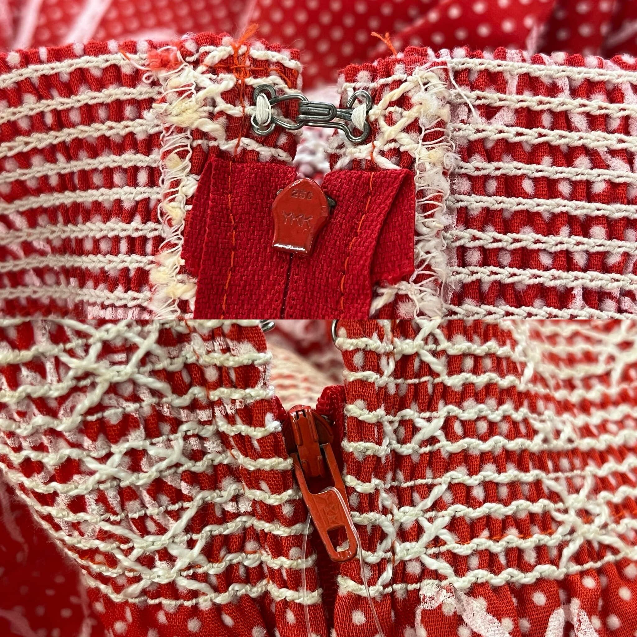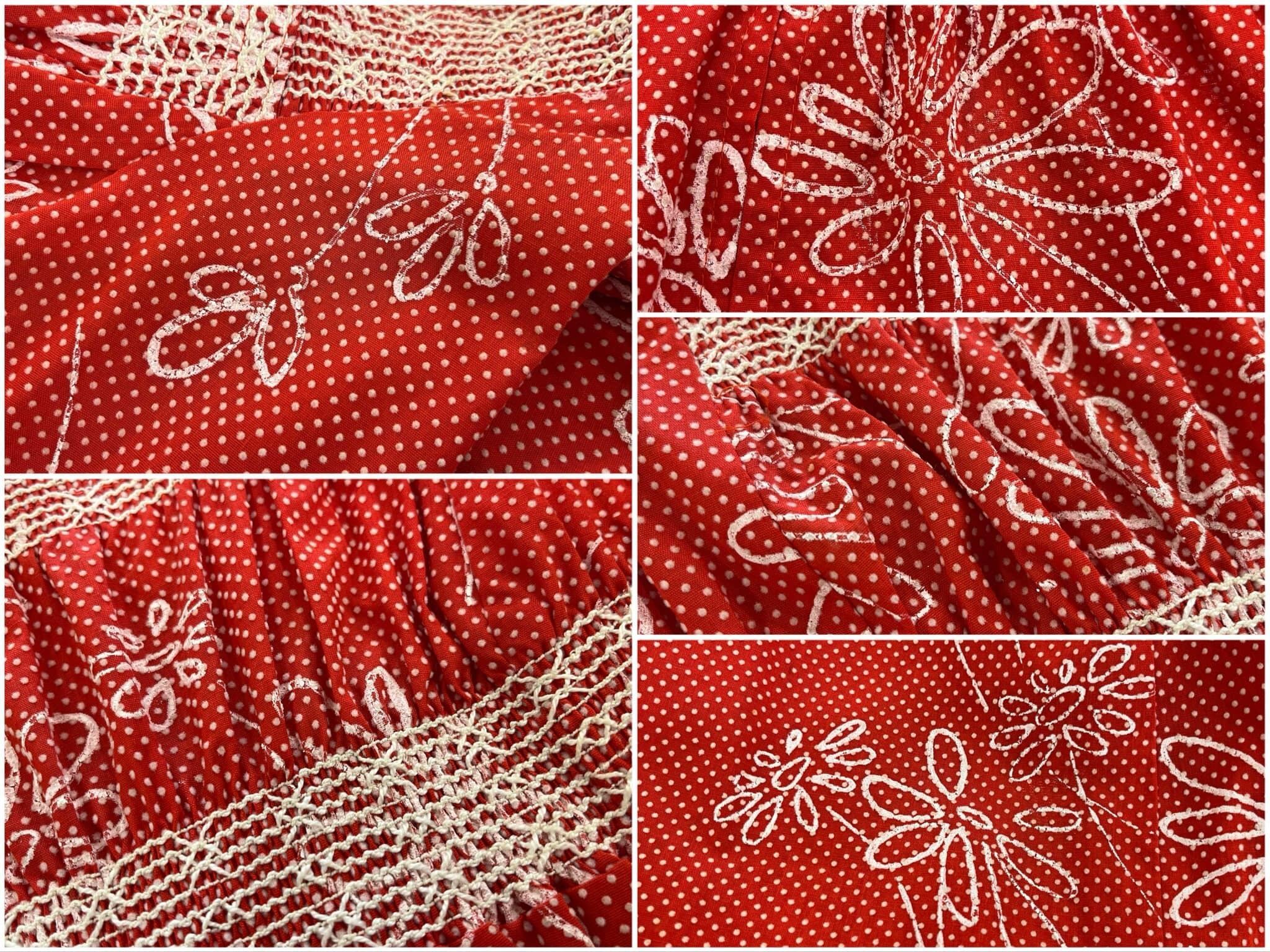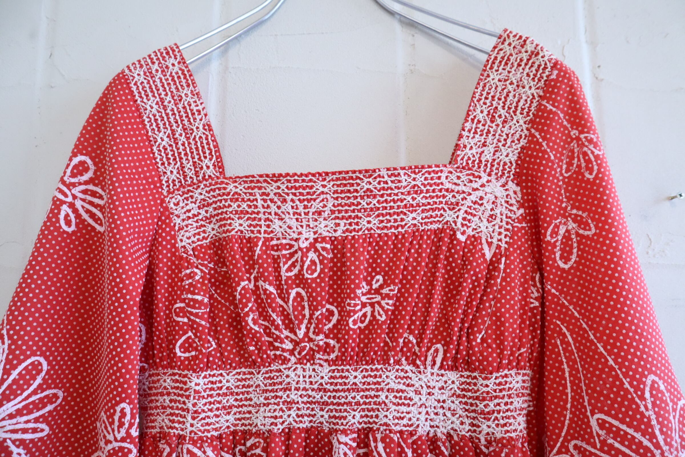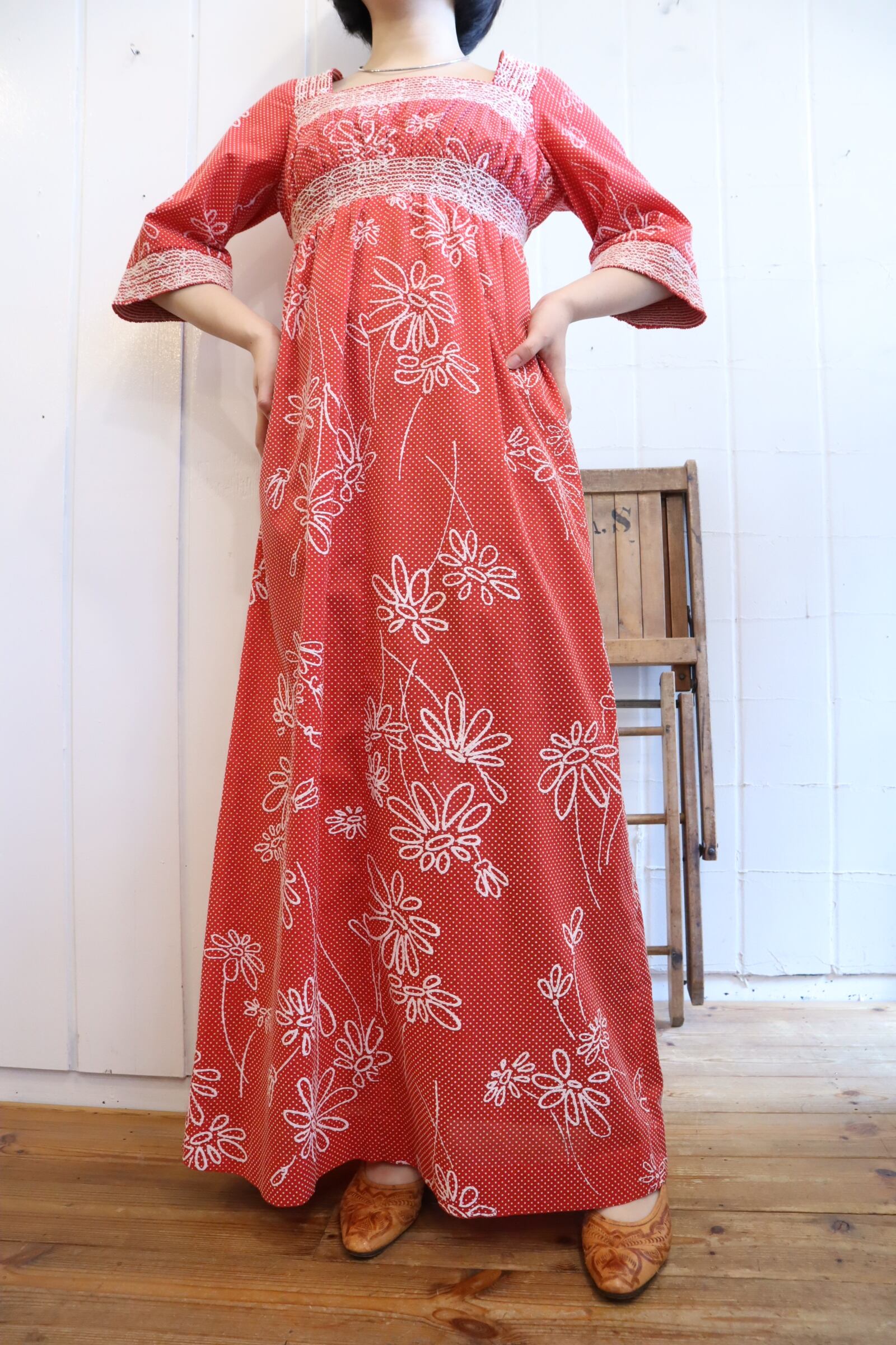70s red×white dot & flower pattern Hawaiian dress [l-2869]
