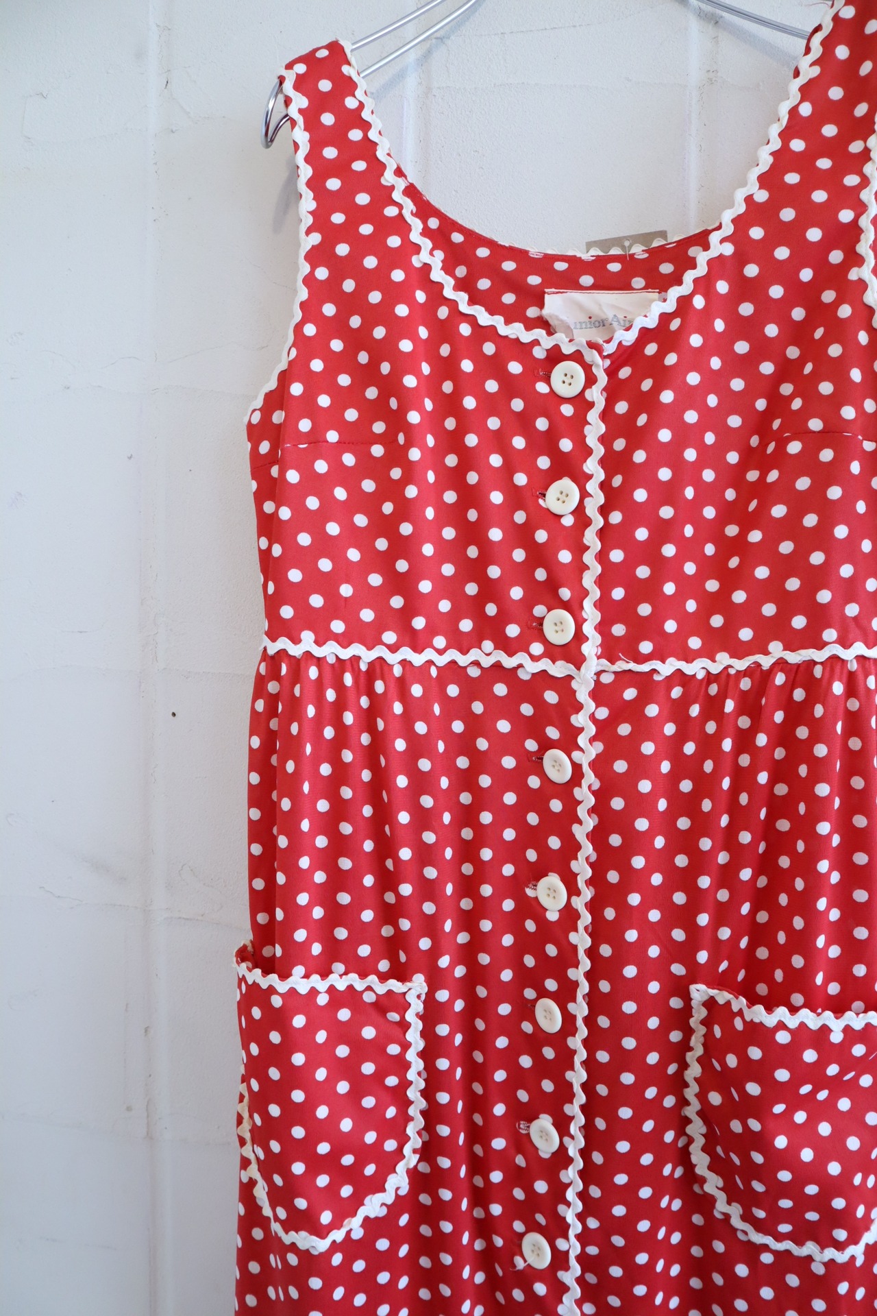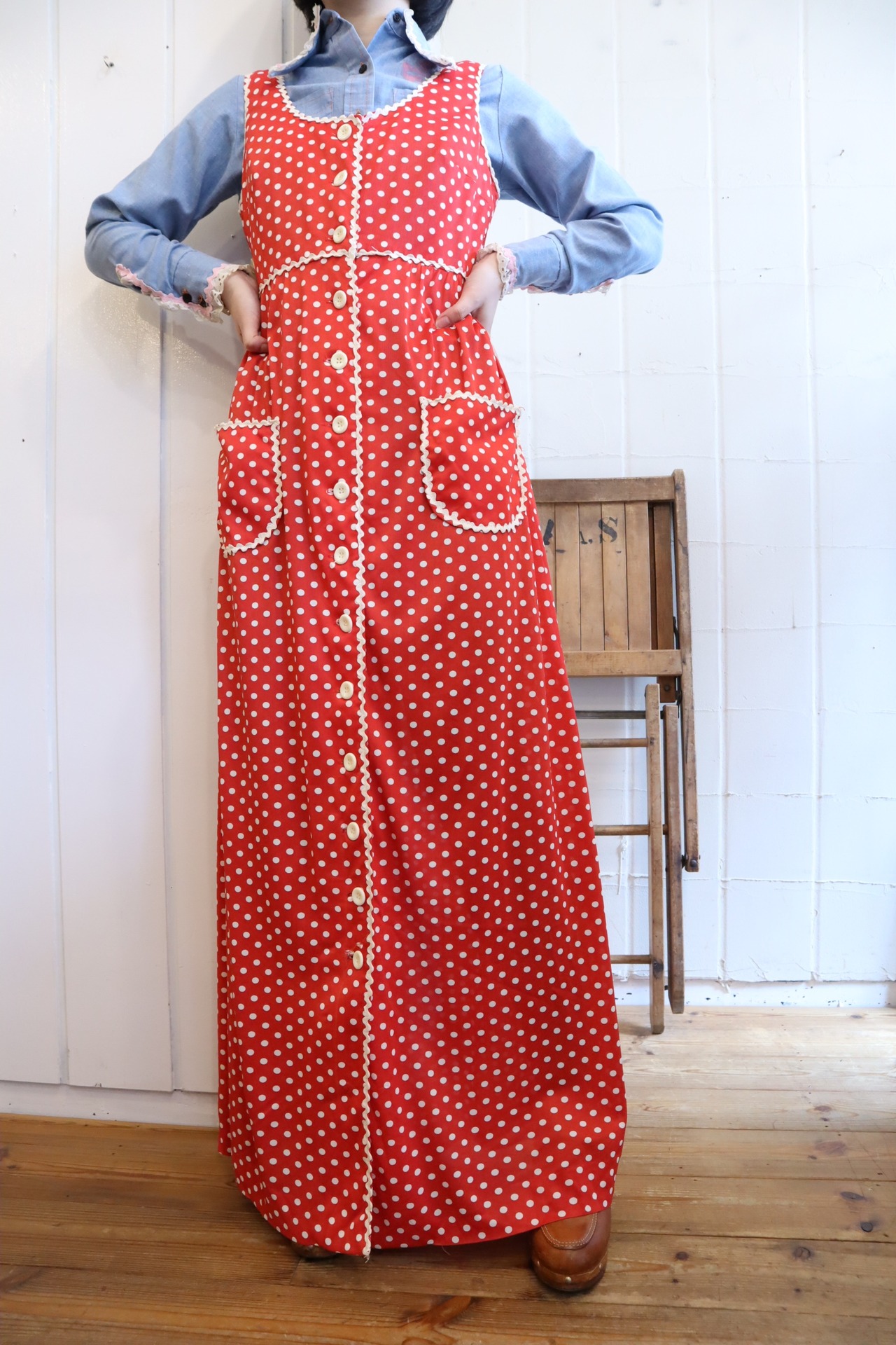 ポケットやなみなみテープのデザインが可愛い70sドレス。てろてろと薄手な素材の為夏にもぴったりです!