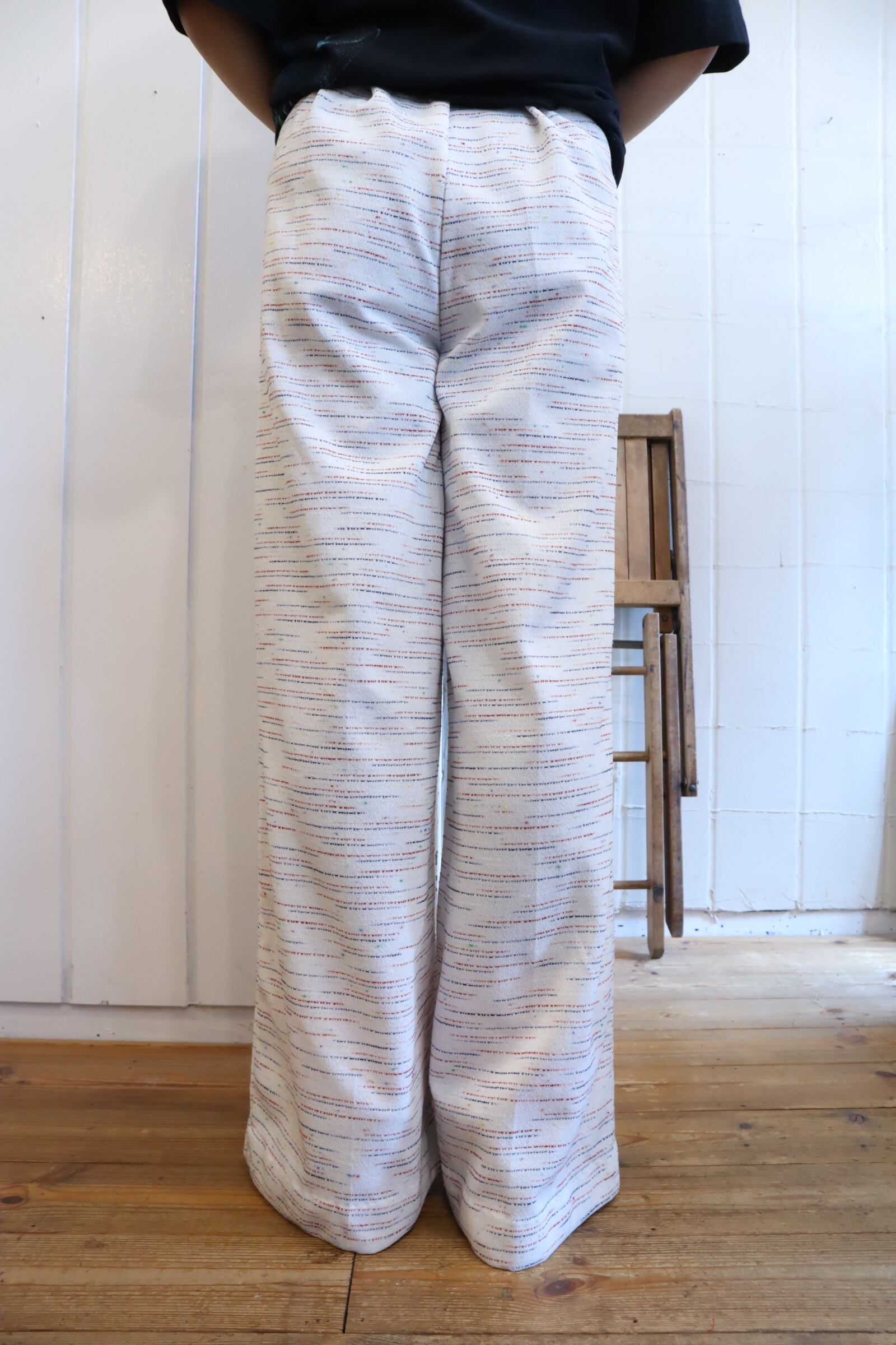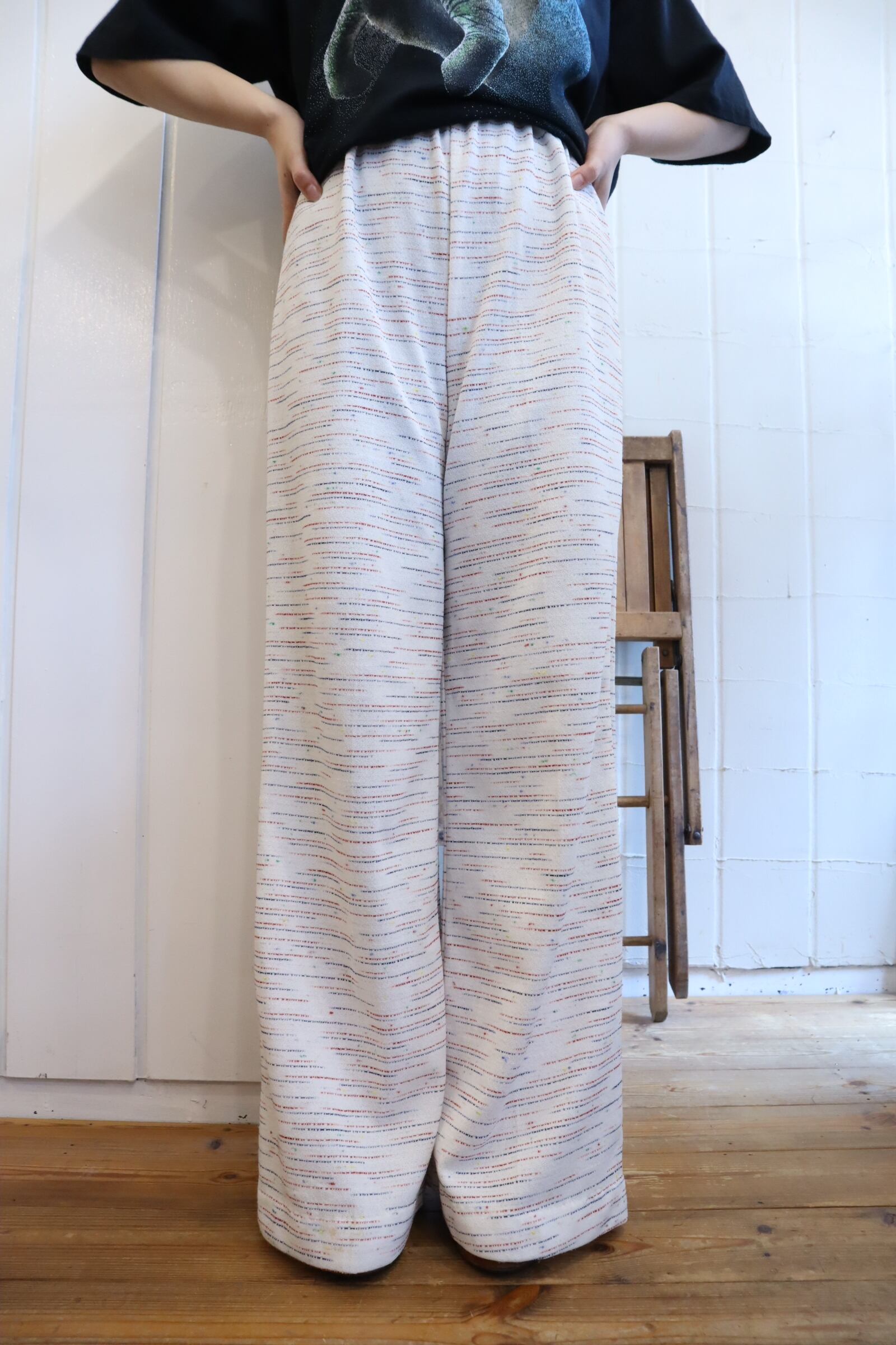 70s white×mixcollar polyester easy wide pants [l-2879]