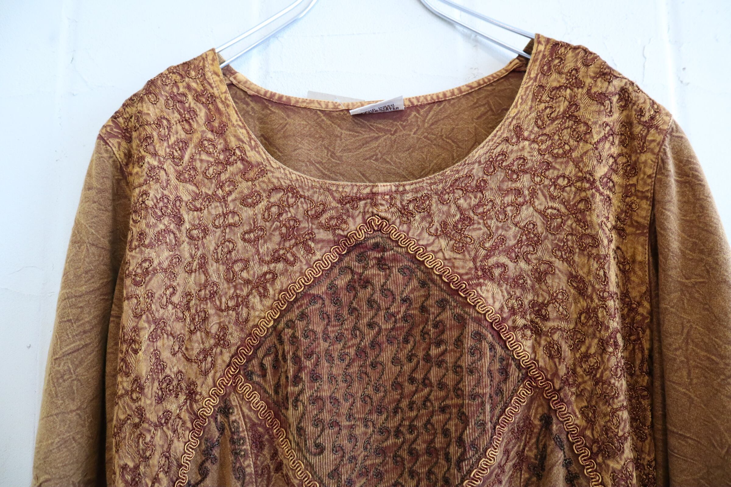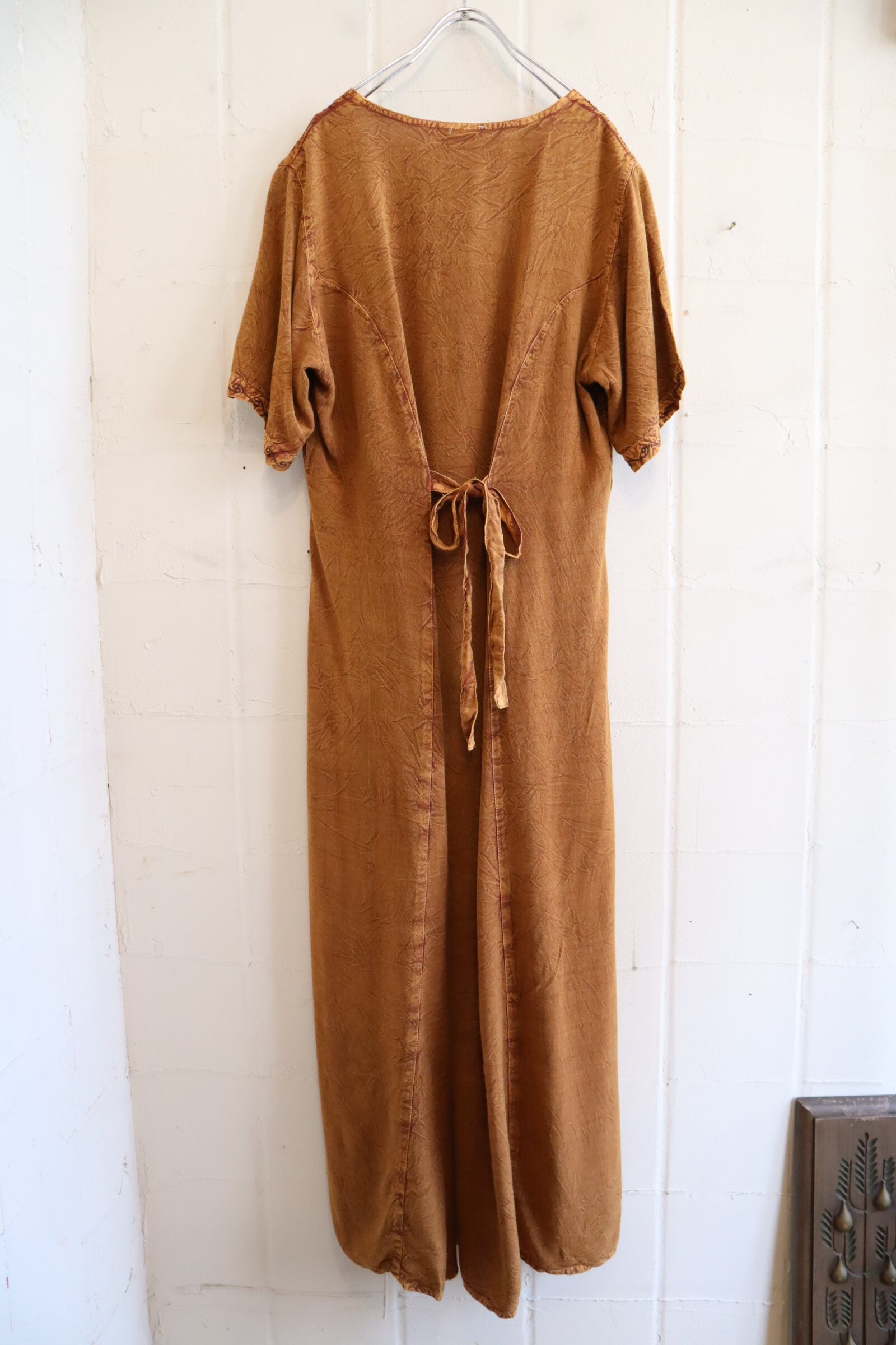 lightbrown×khaki embroidery Indian rayon dress [l-2884]