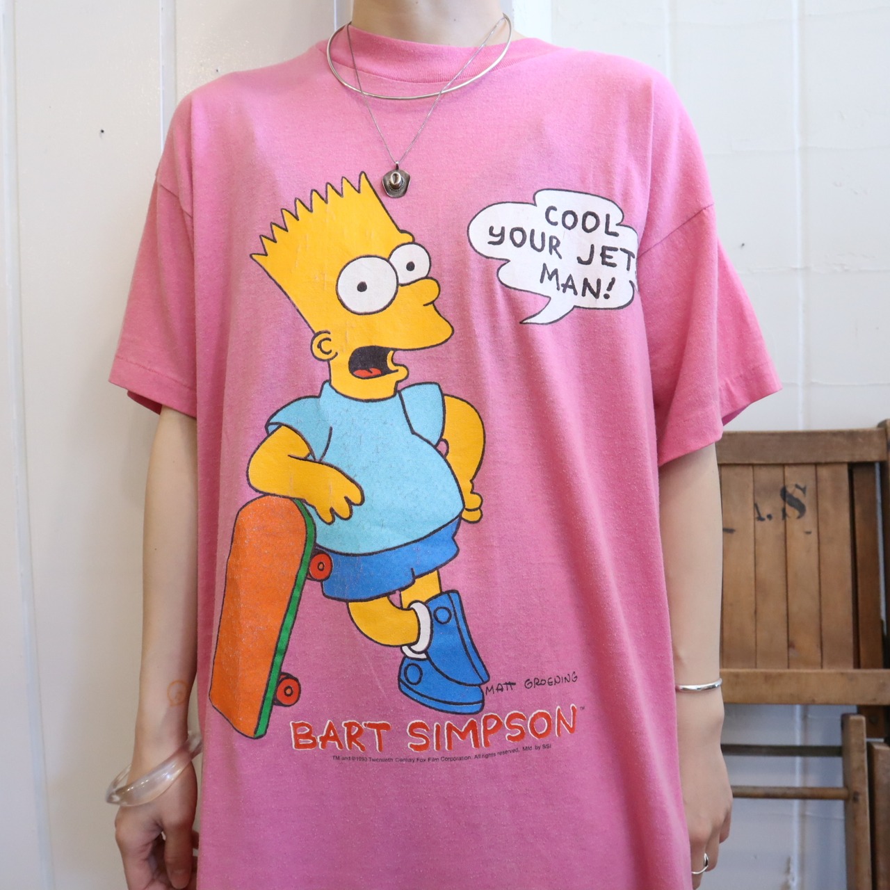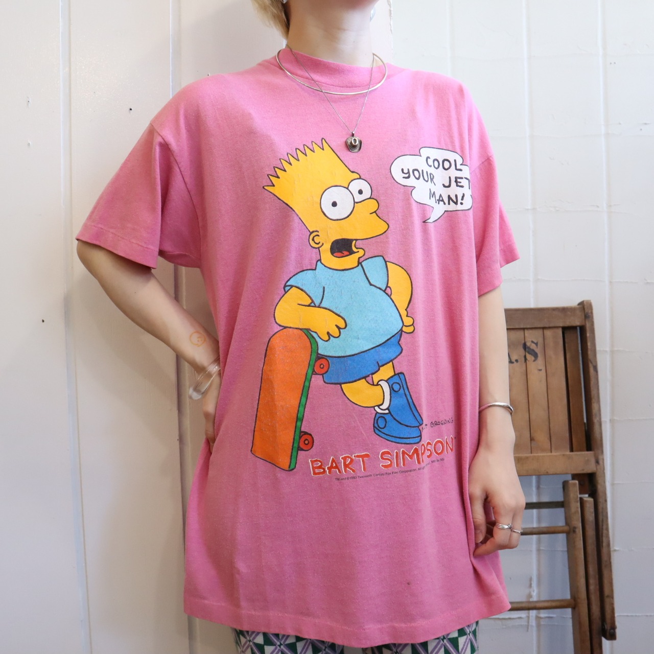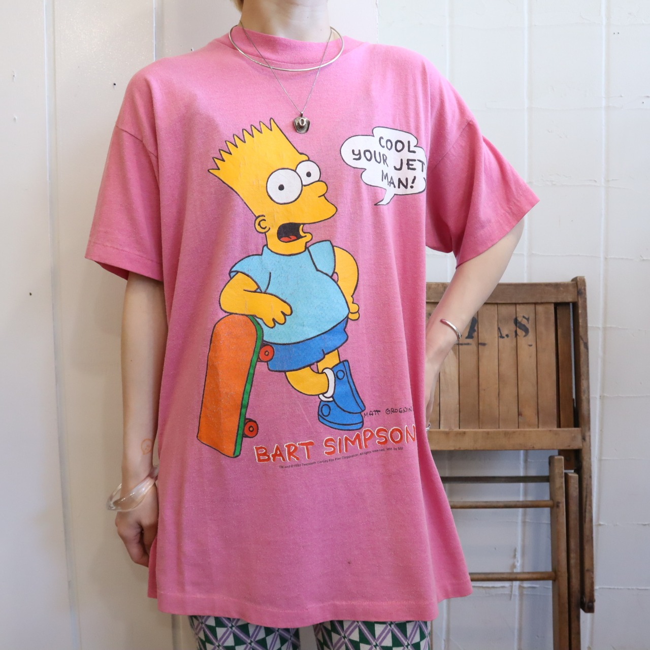 ピンクカラーにシンプソンズのプリントが可愛いTシャツです*