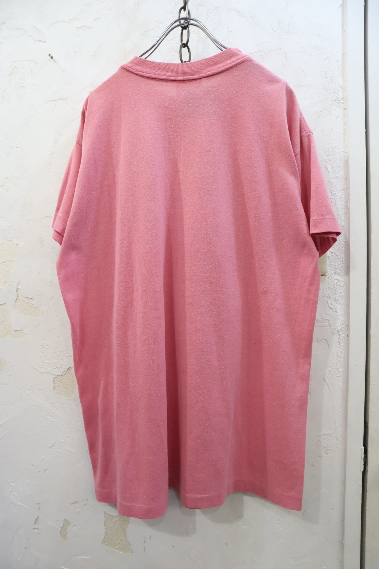 90s pink×yellow character print T-shirt [k-2886]