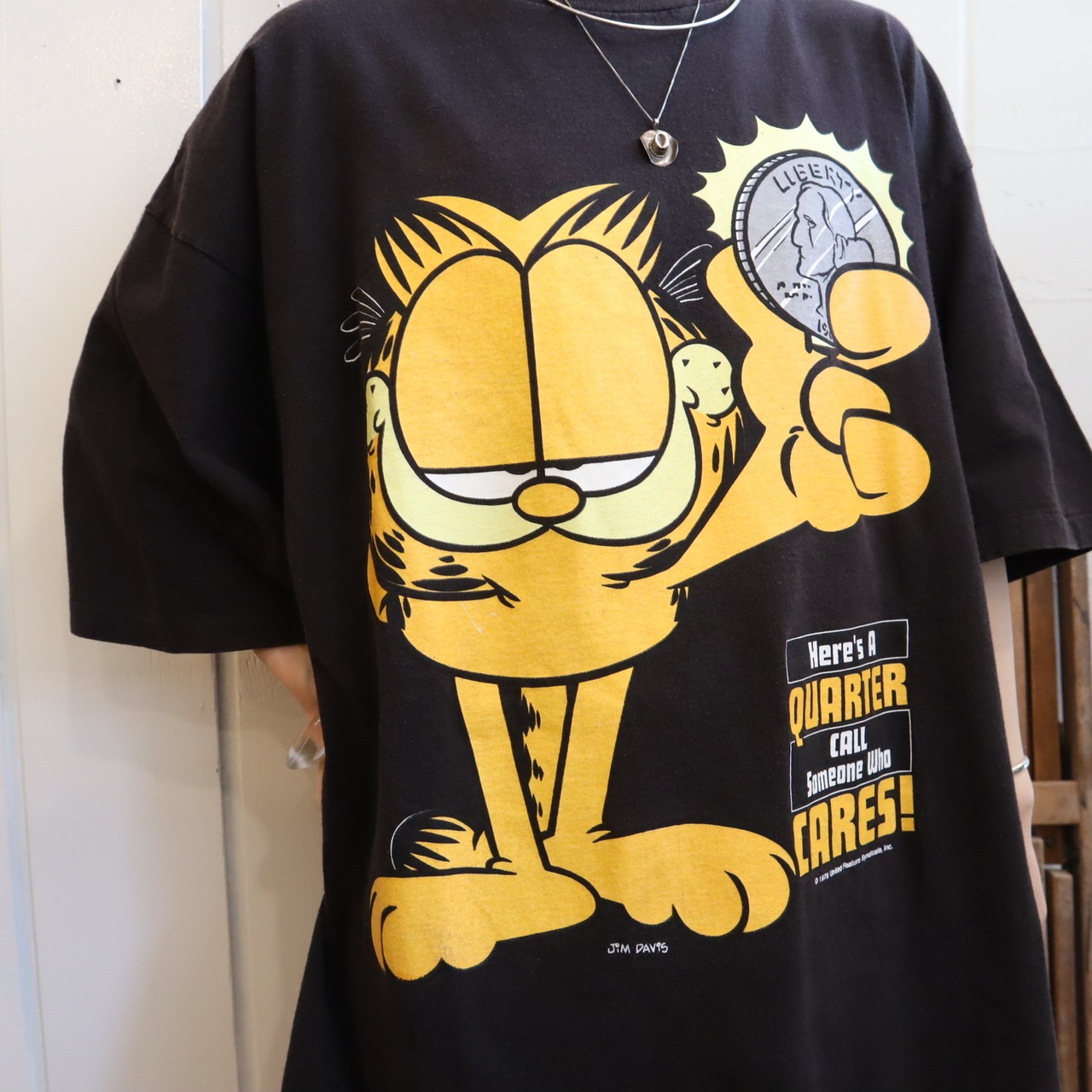 コインを持ったガーフィールドのプリントが可愛いTシャツです*