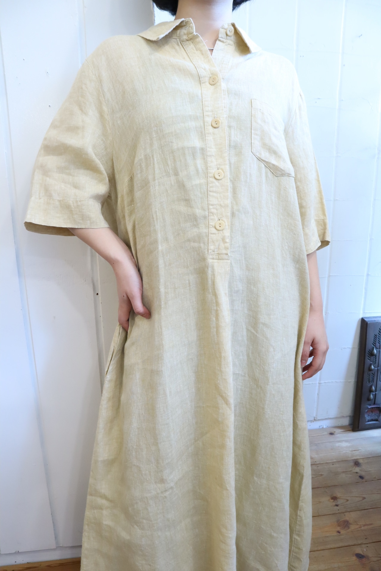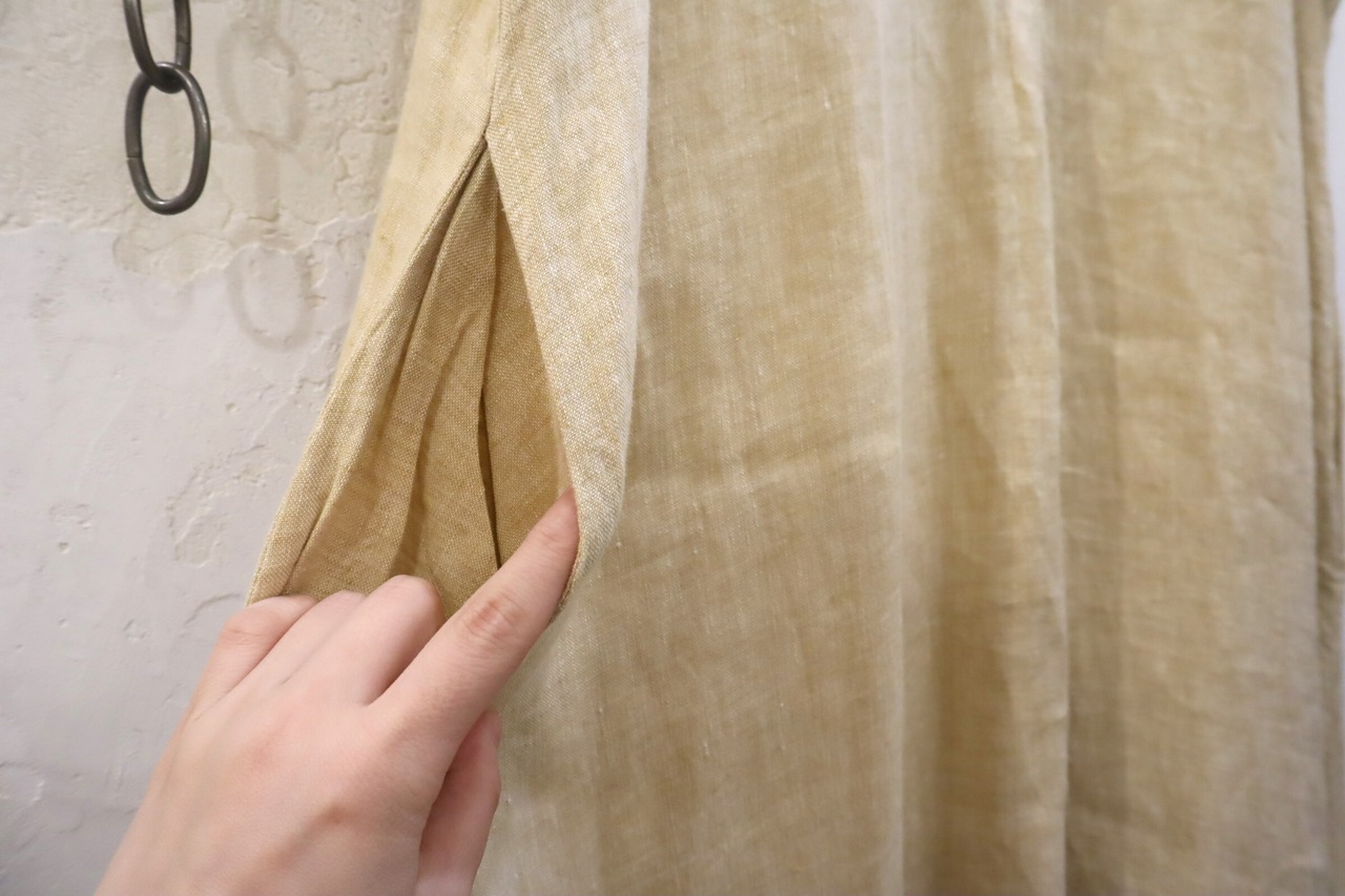 FLAX yellowbeige plain linen dress [k-2894]