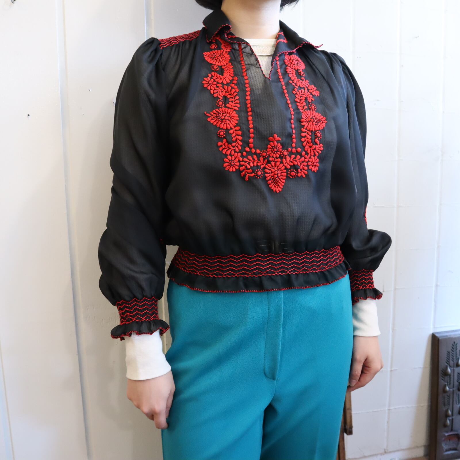 きゅっとなるお袖やジャストなサイズ感、単色の刺繍が素敵なヴィンテージ長袖チュニック。