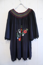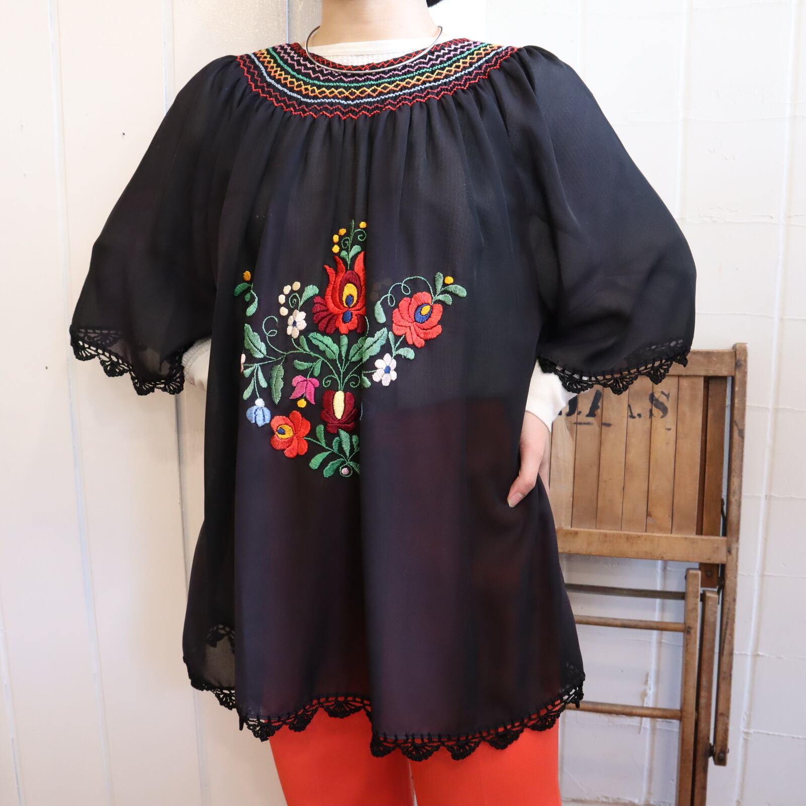 お袖と裾のかぎ編みレースが可愛いヴィンテージハンガリー刺繍チュニック。