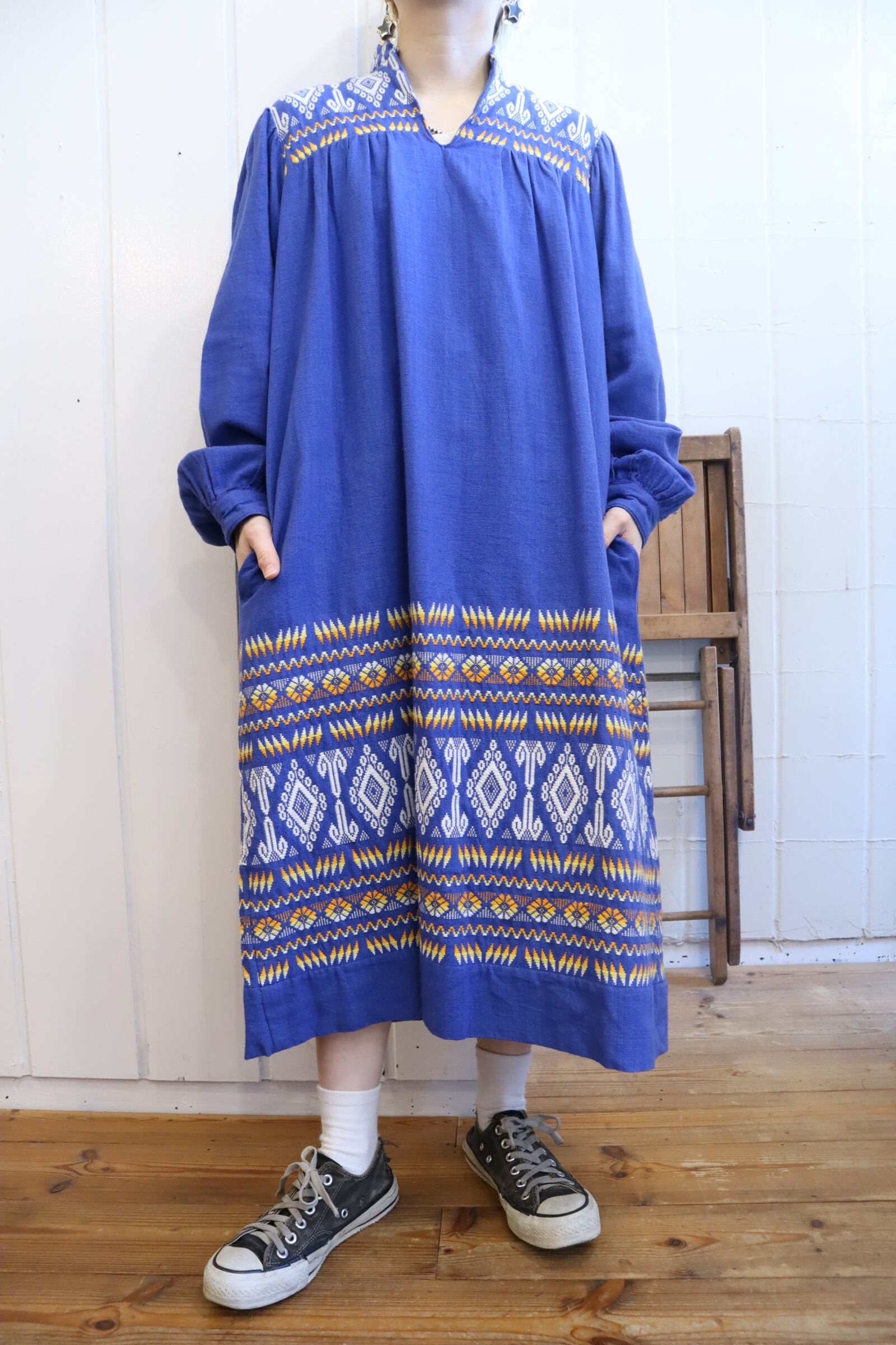 鮮やかなブルーにグアテマラ刺繍が映えて素敵なドレス*
