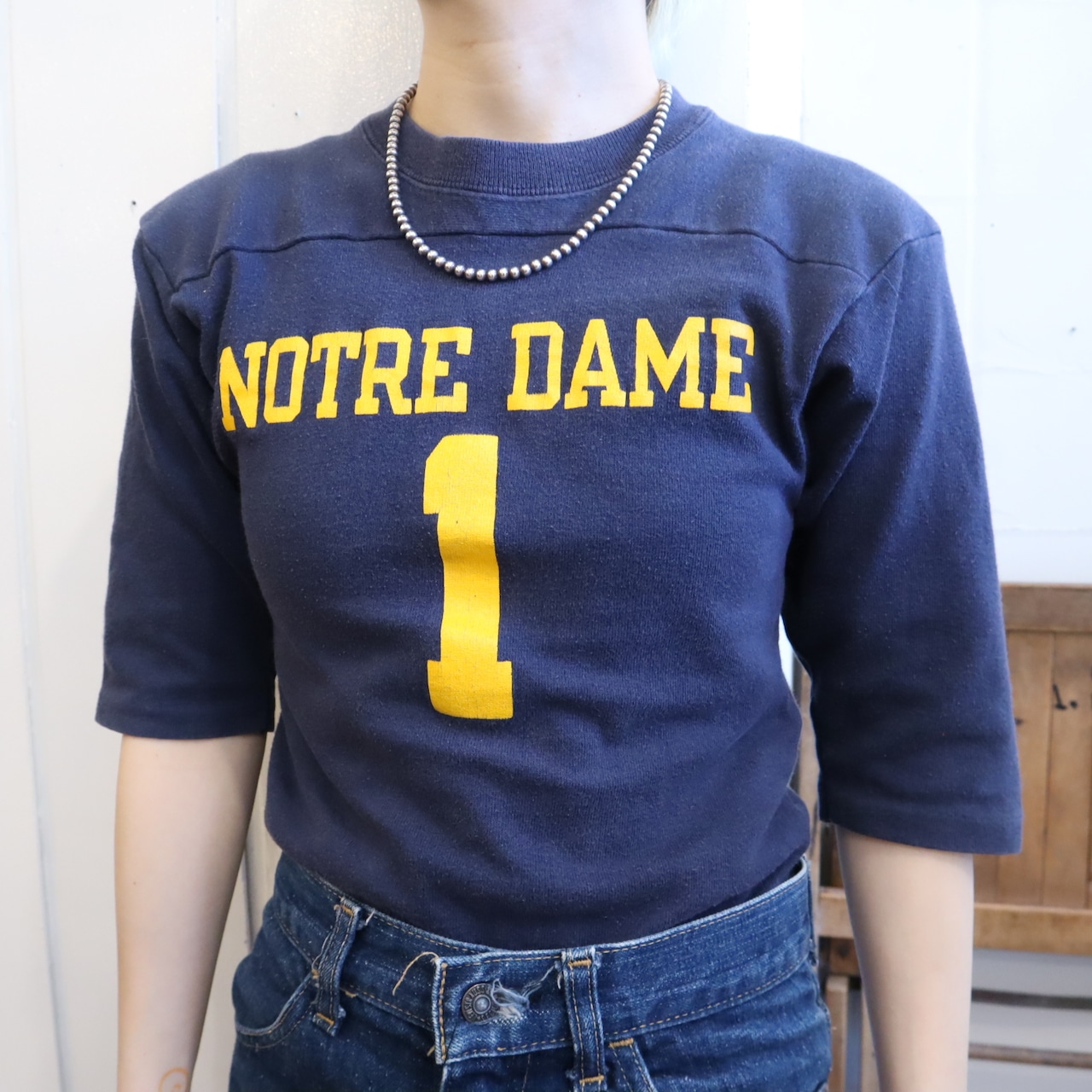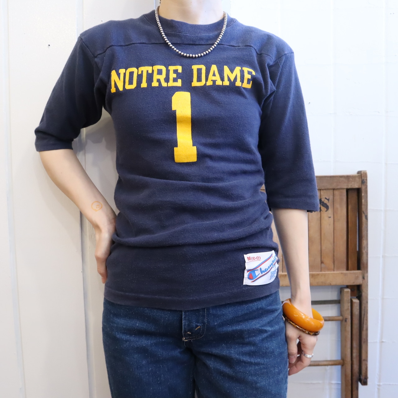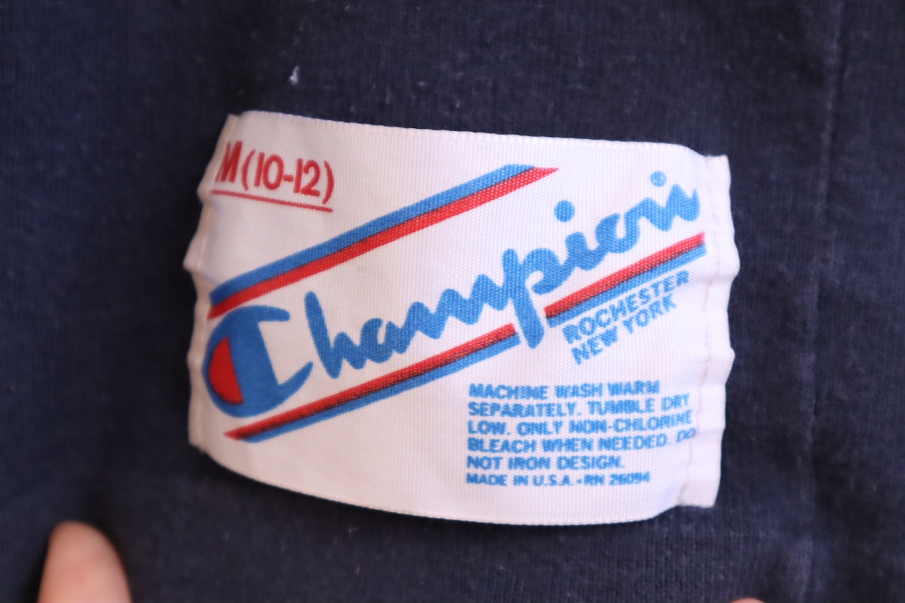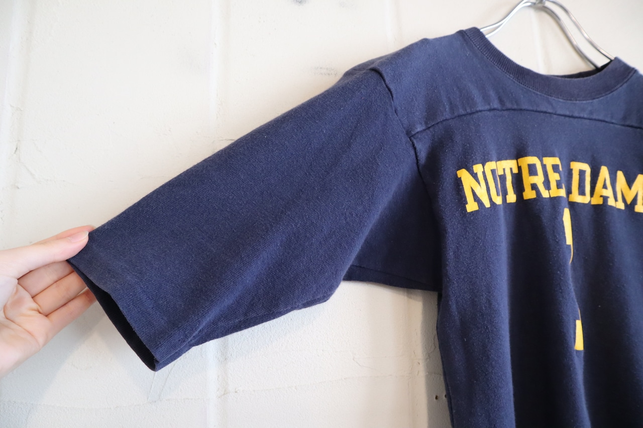 80s Champion navy×yellow numbering print football T-shirt [l-2909]