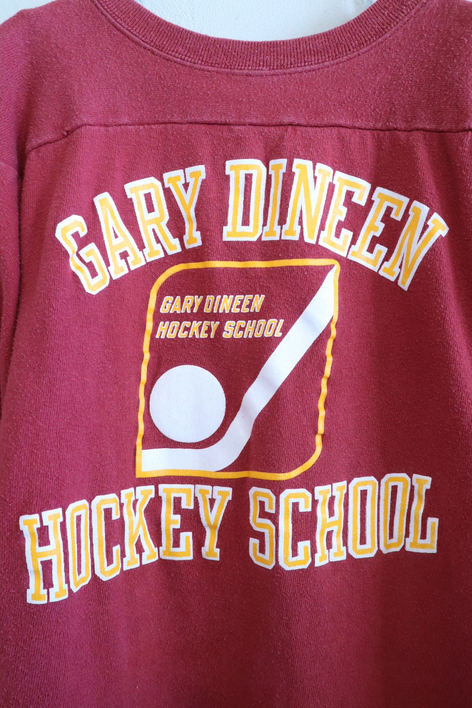 ホッケー選手のスクールのロゴがプリントされた80年代のTシャツ。