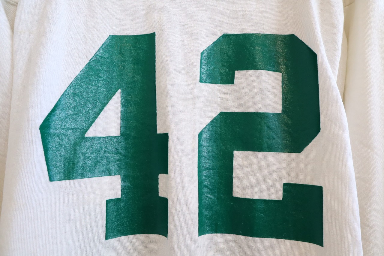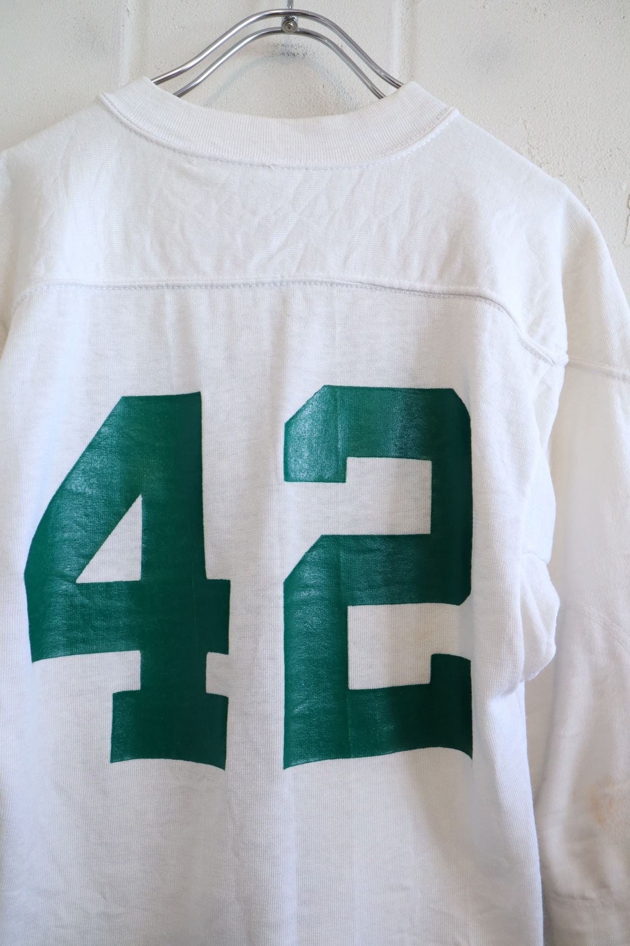 70s RUSSELL white×green numbering print football T-shirt [l-2911]