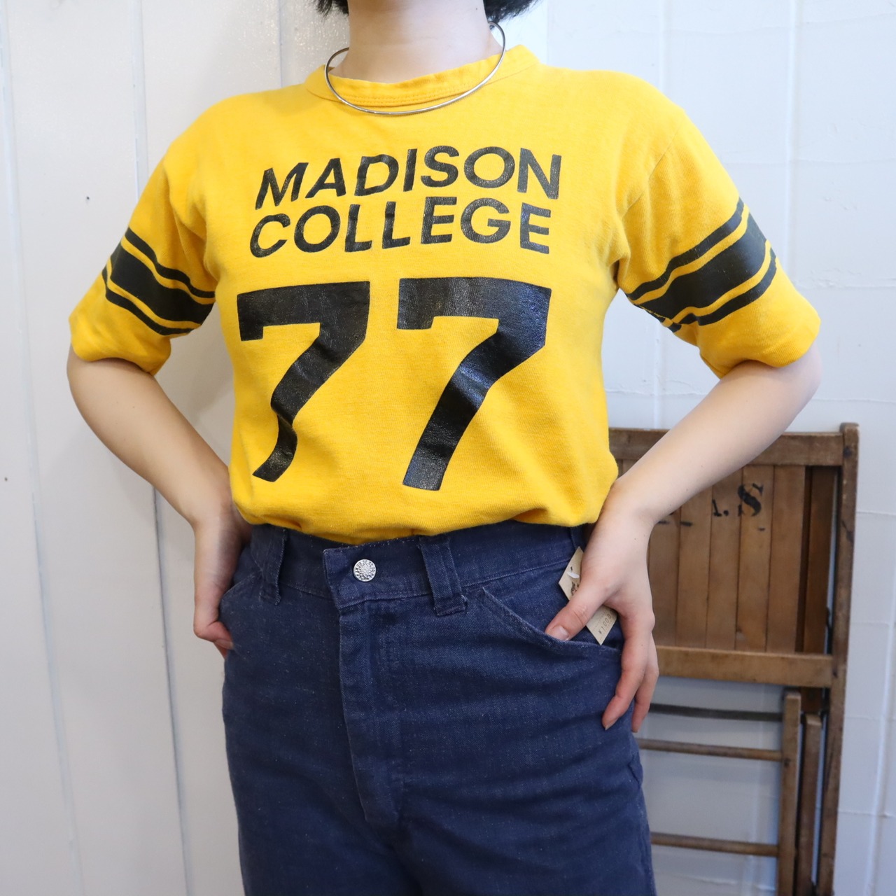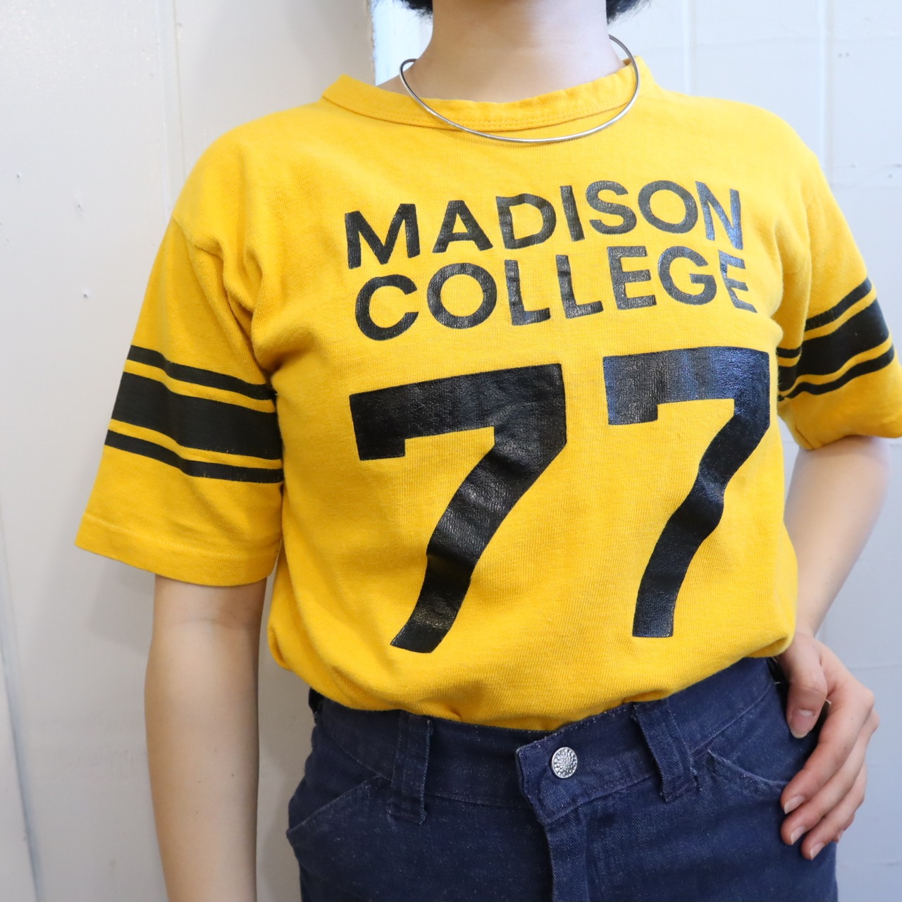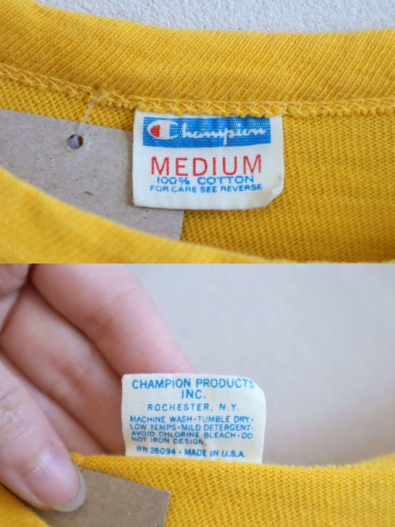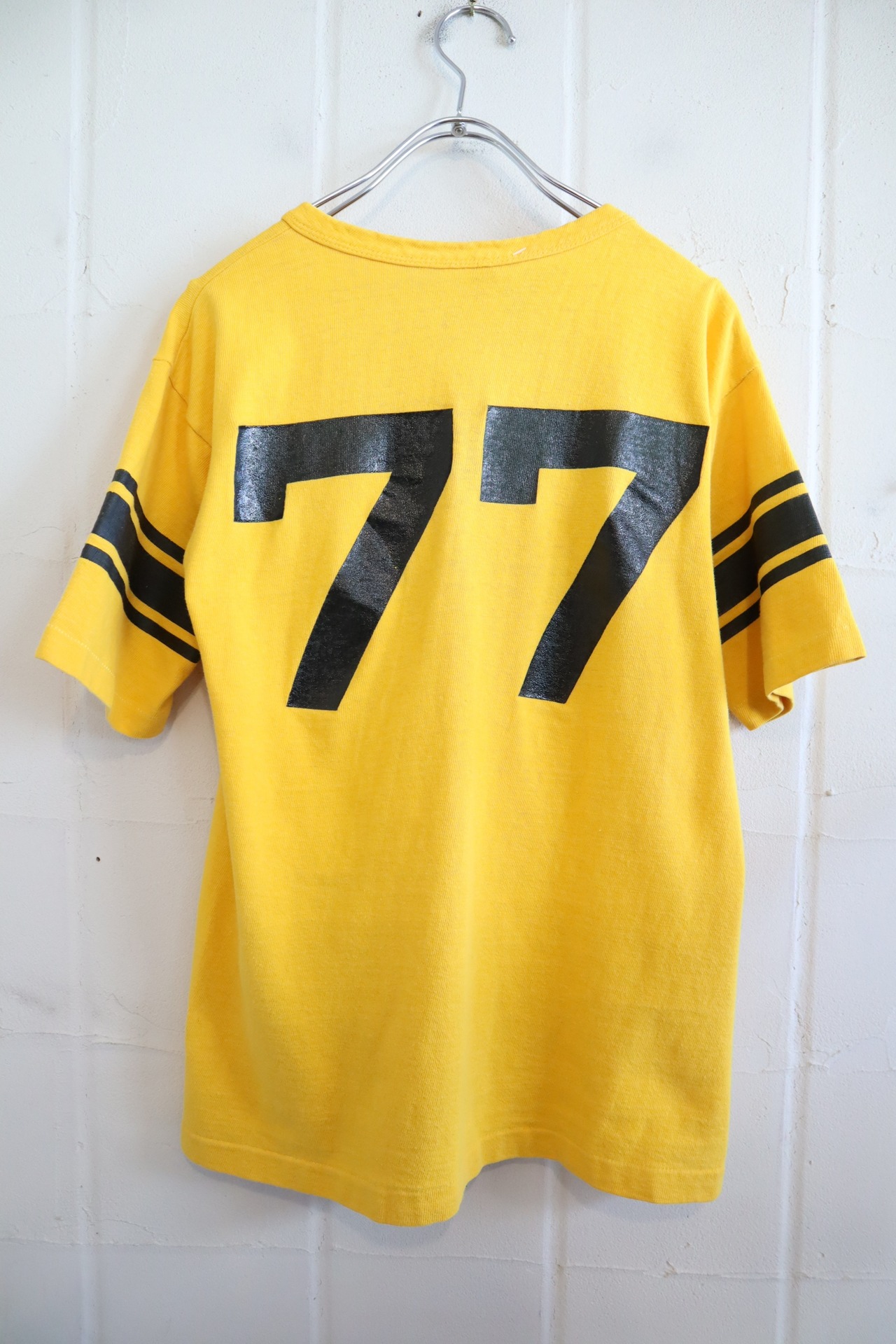 70s-80s Champion yellow×black numbering print T-shirt [l-2912]