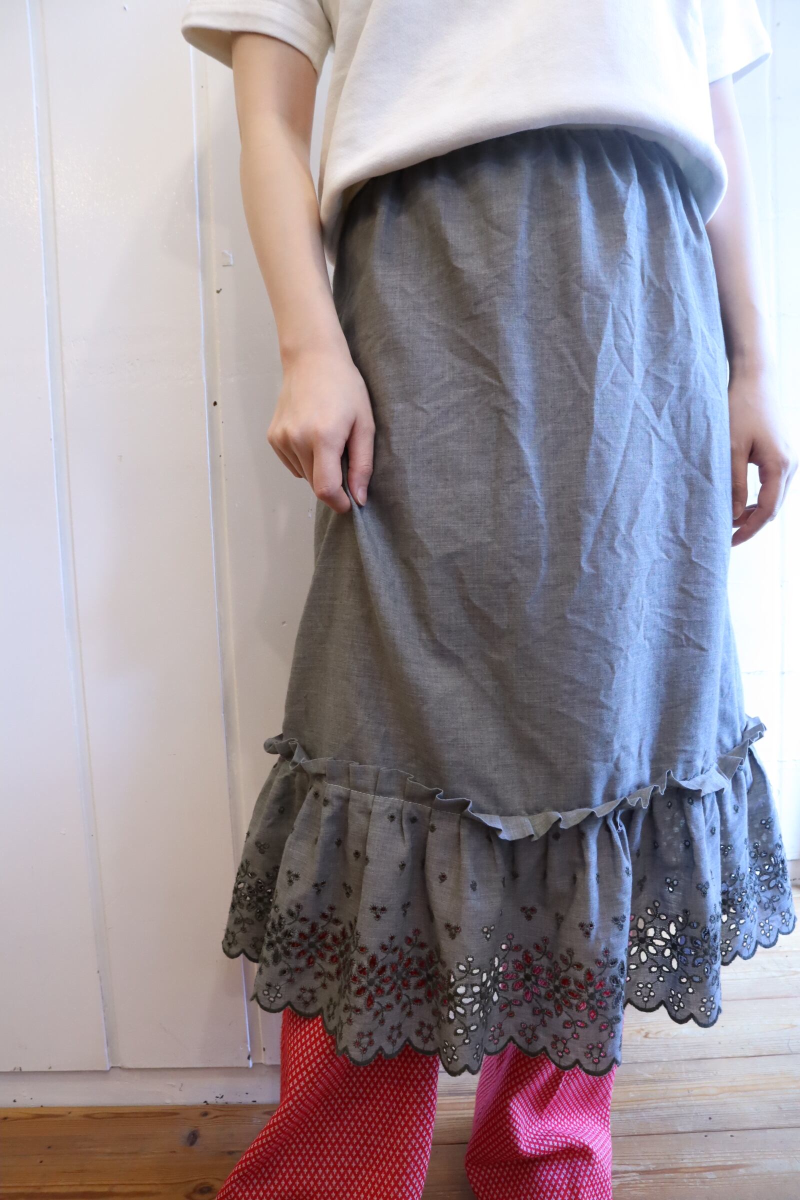 graykhaki plain frill lace hem skirt [l-2918]