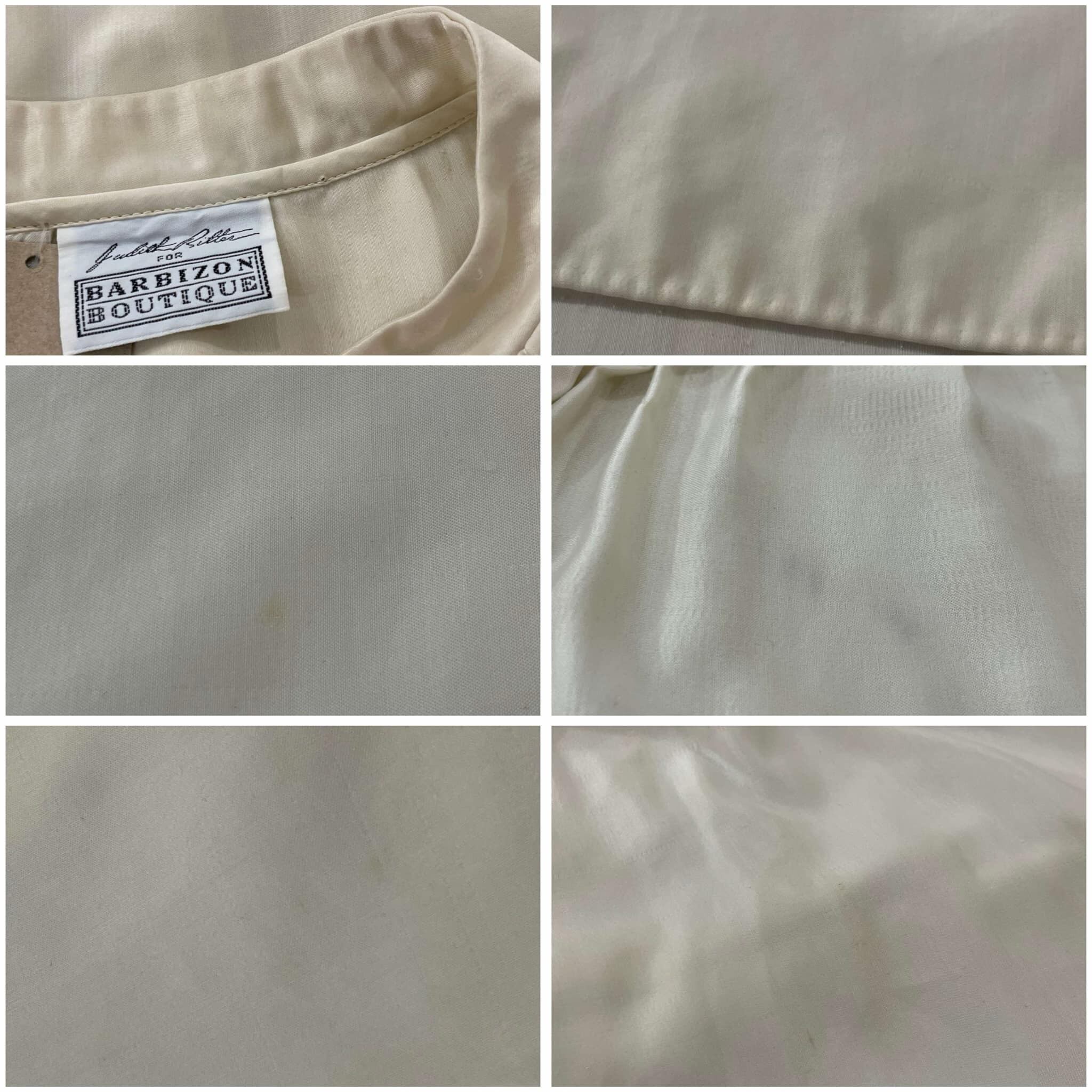 いくつかレースに破れ、首周りに黄ばみ、ボディにいくつかシミ、汚れ、ツレがございますが、いずれも古着の味として着て頂けるかと思います。