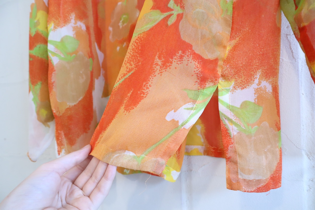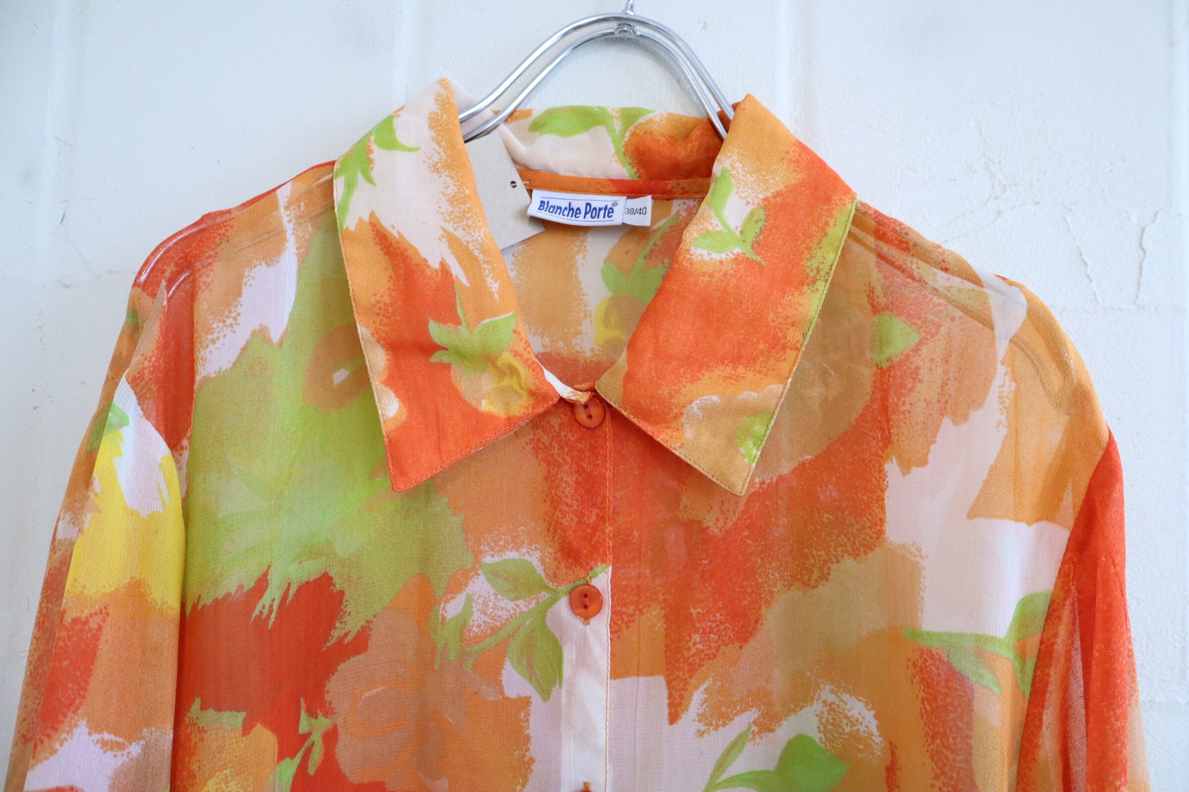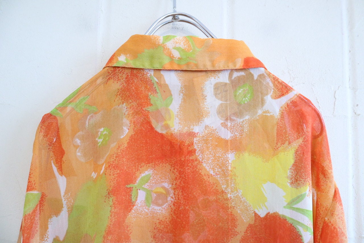 orange×lightgreen flower pattern see through shirt [l-2928]