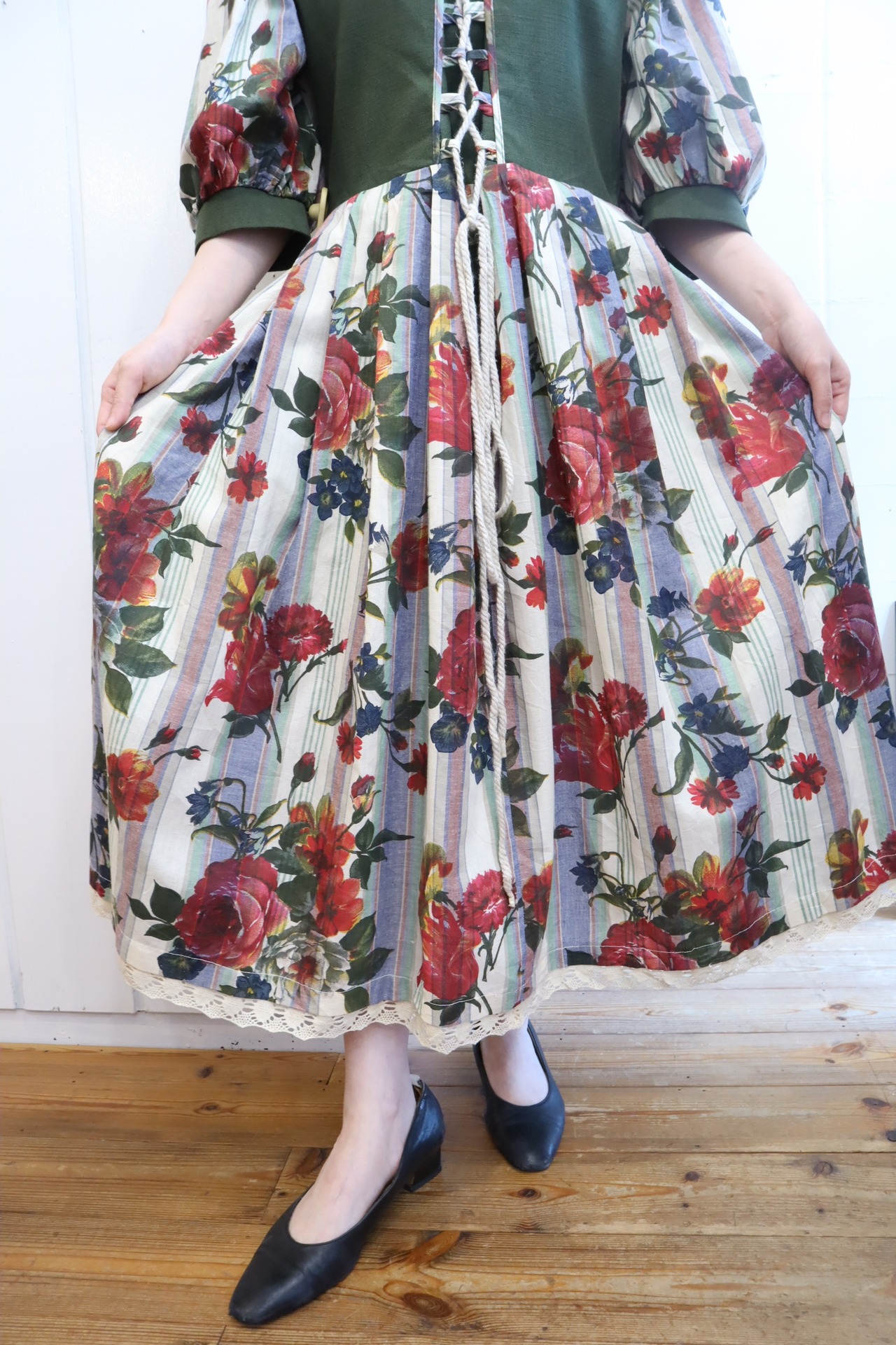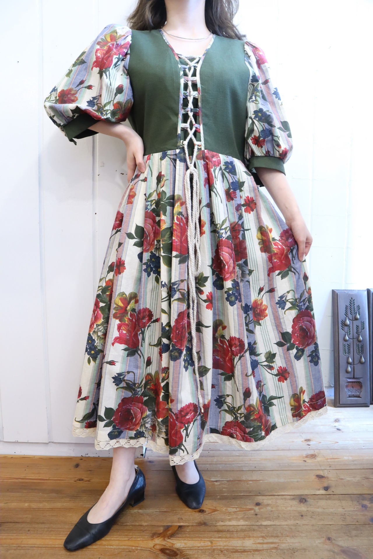 大胆に広がる大きな花柄が特徴的なチロルドレス♡