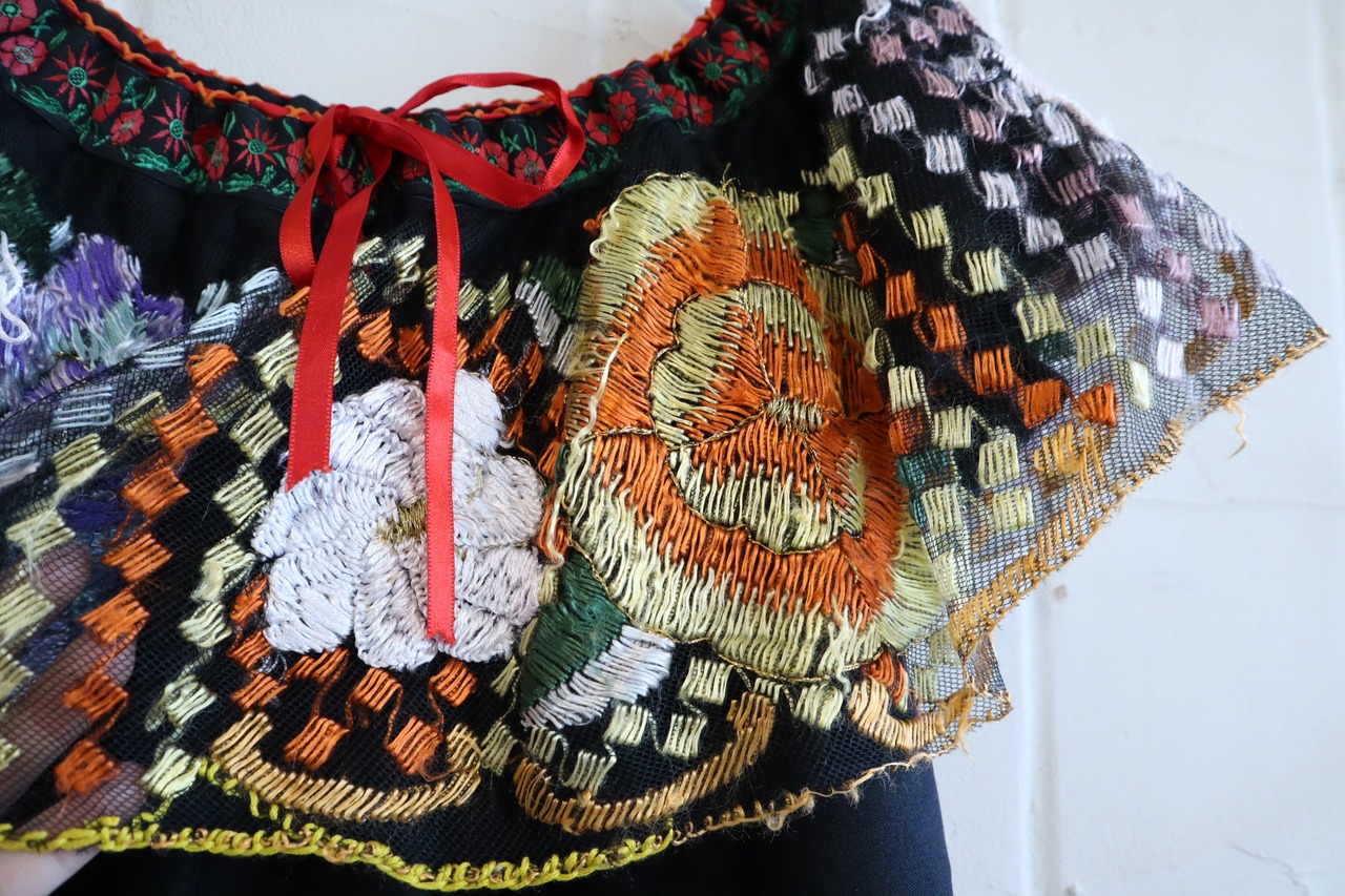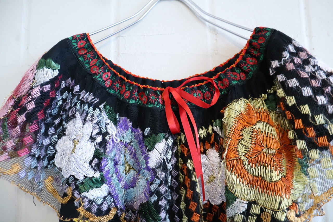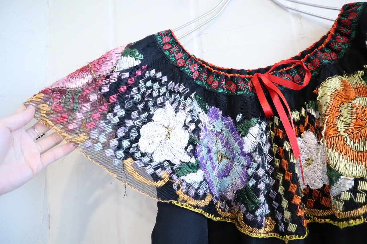 black×colorful flower embroidery Mexican tunic [l-2943]
