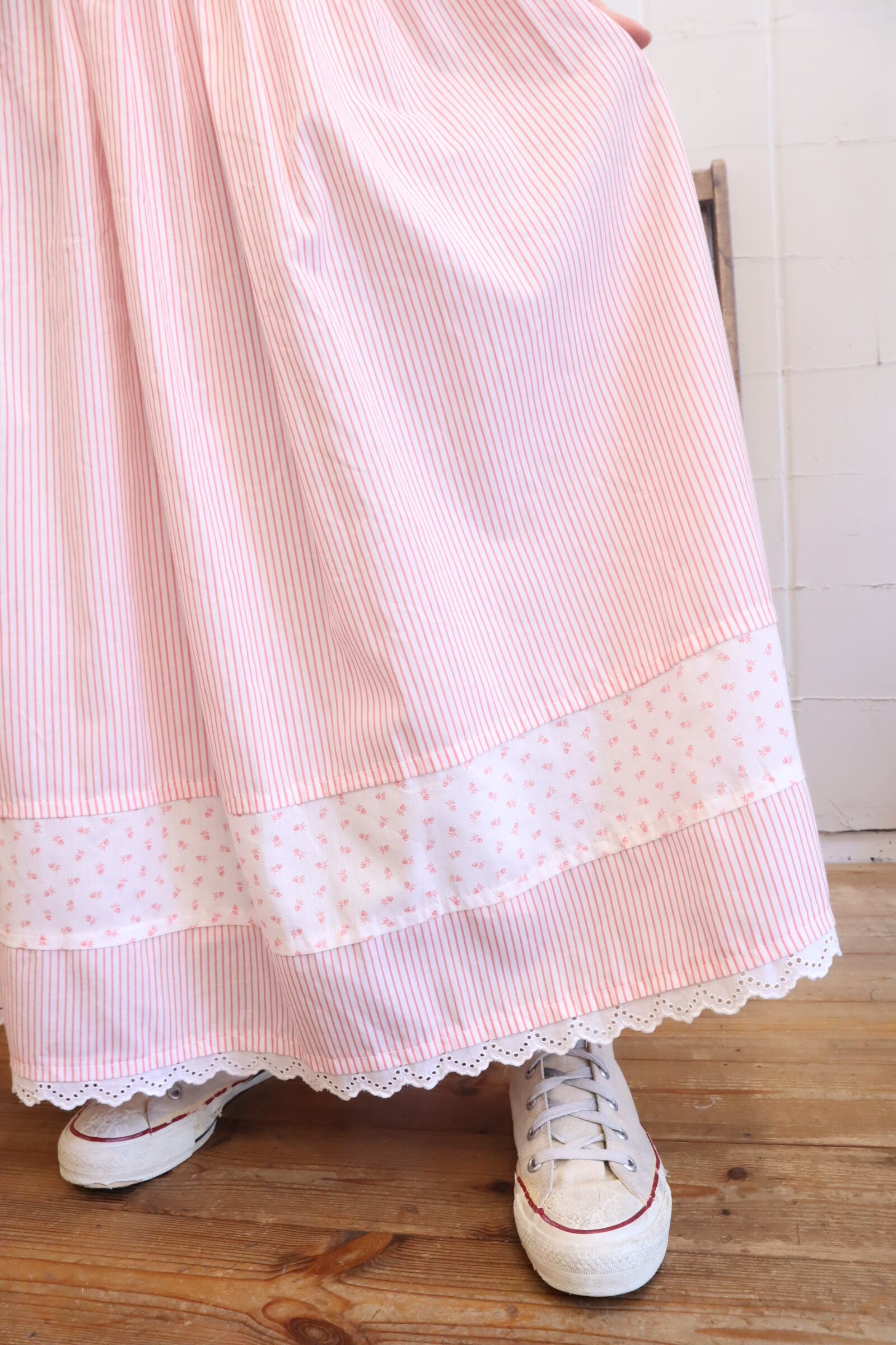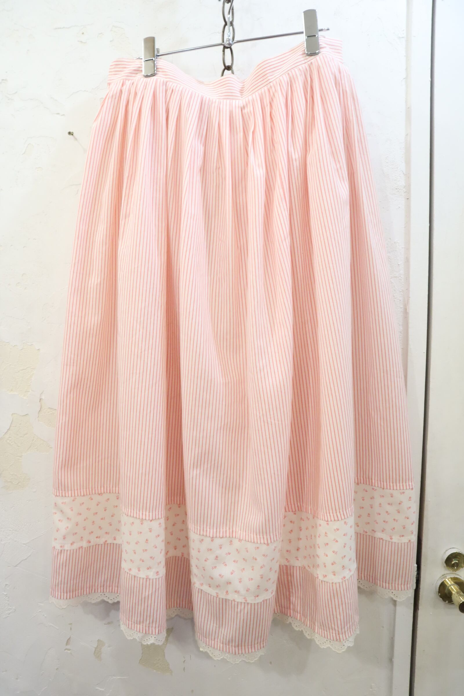 pinkred×white stripe&flower pattern skirt [l-2952]