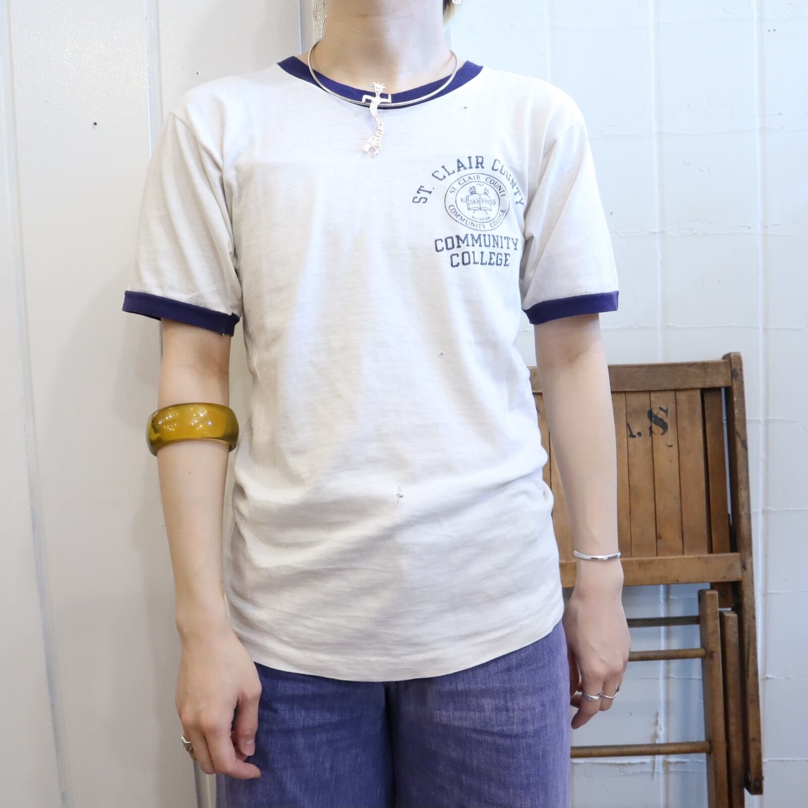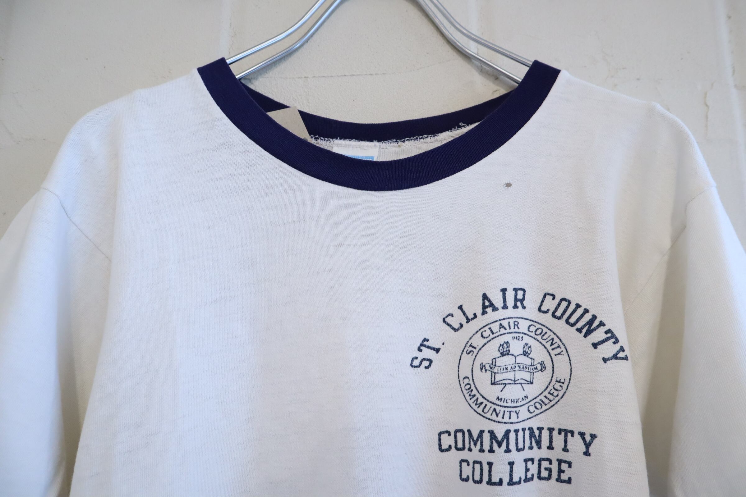 程良いダメージ感や、てろてろな生地感が良い70-80s championのリンガーTシャツ。